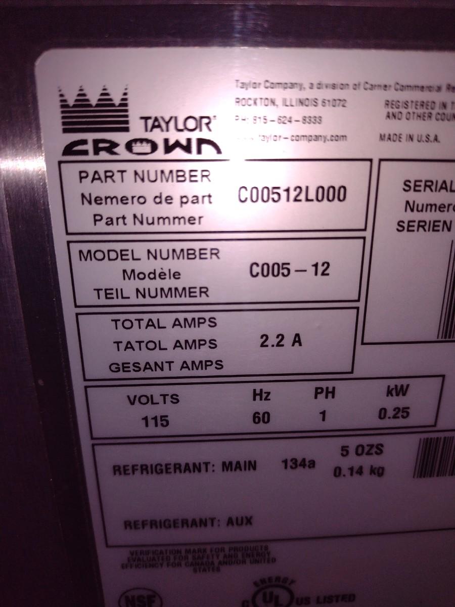 Taylor Commercial Brand Coffee Dairy Dispenser Choice B Shipping option via freight or local mover is Buyer's responsibility and expense. Buyer must have all shipping scheduled within the stated dates and times of pickup. Recommended local movers are Beaty Bros. Moving 828-201-2982 and Carolina Pack n Go 828-489-9773