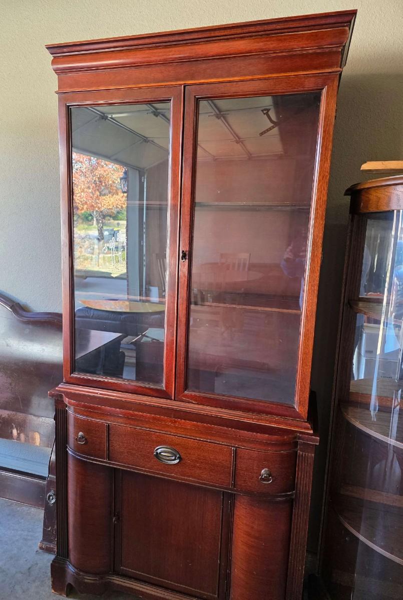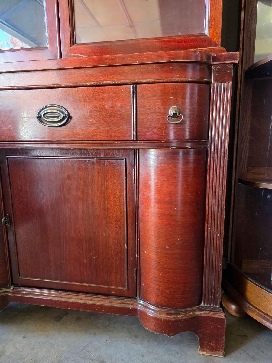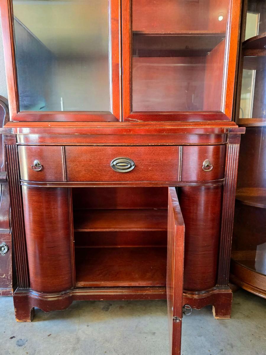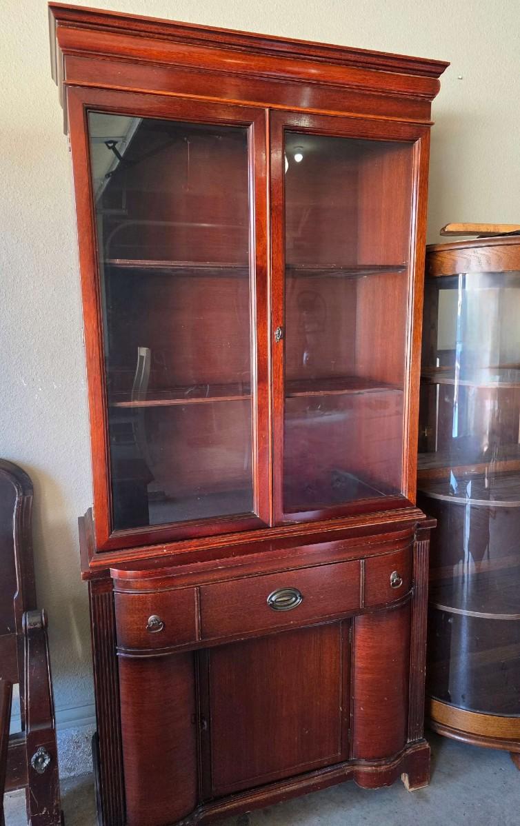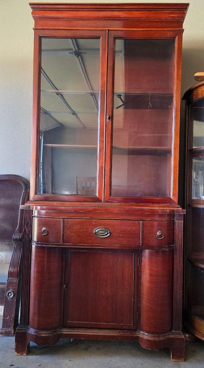 Display Cabinet with 2 doors and 1 drawer. Does have some scratches as pictured, especially at the bottom. 34"L x 14"W x 72"H.