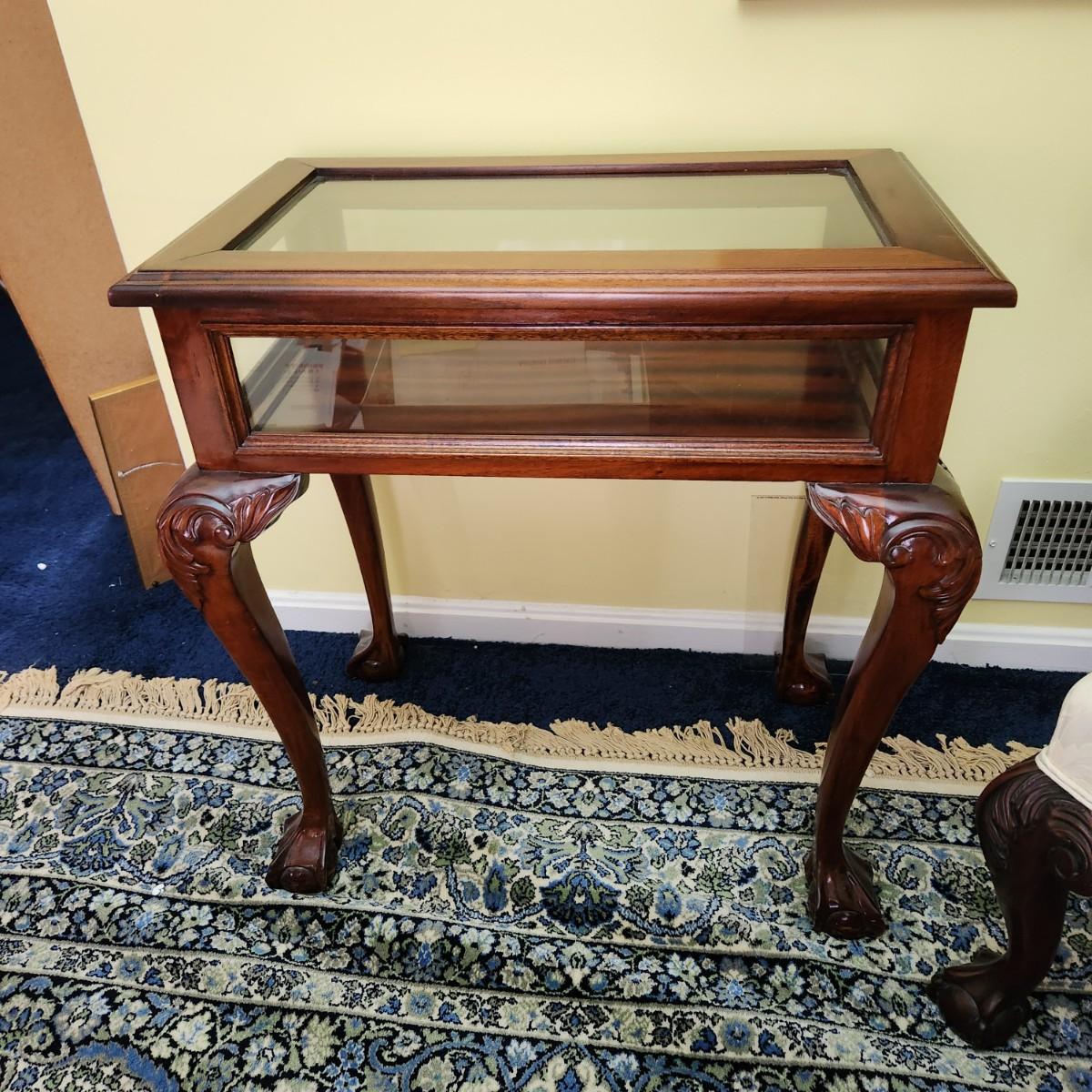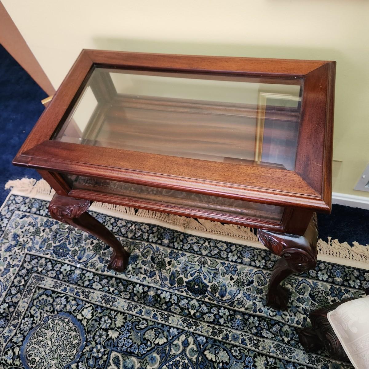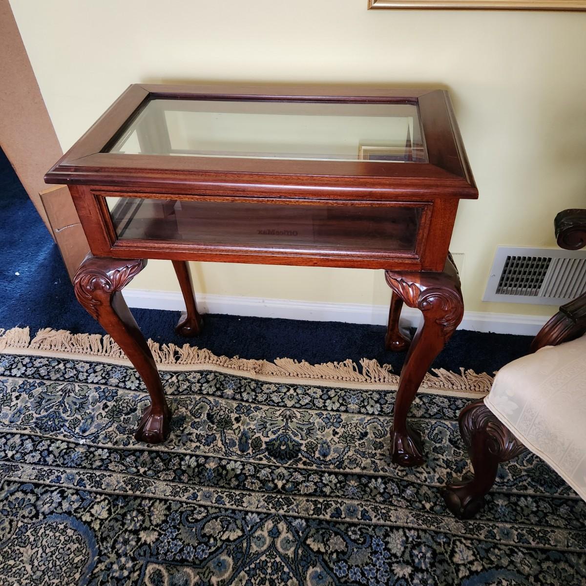 Vintage Vitrine Display Case Table Carved Legs Claw & Ball feet 27x16x30