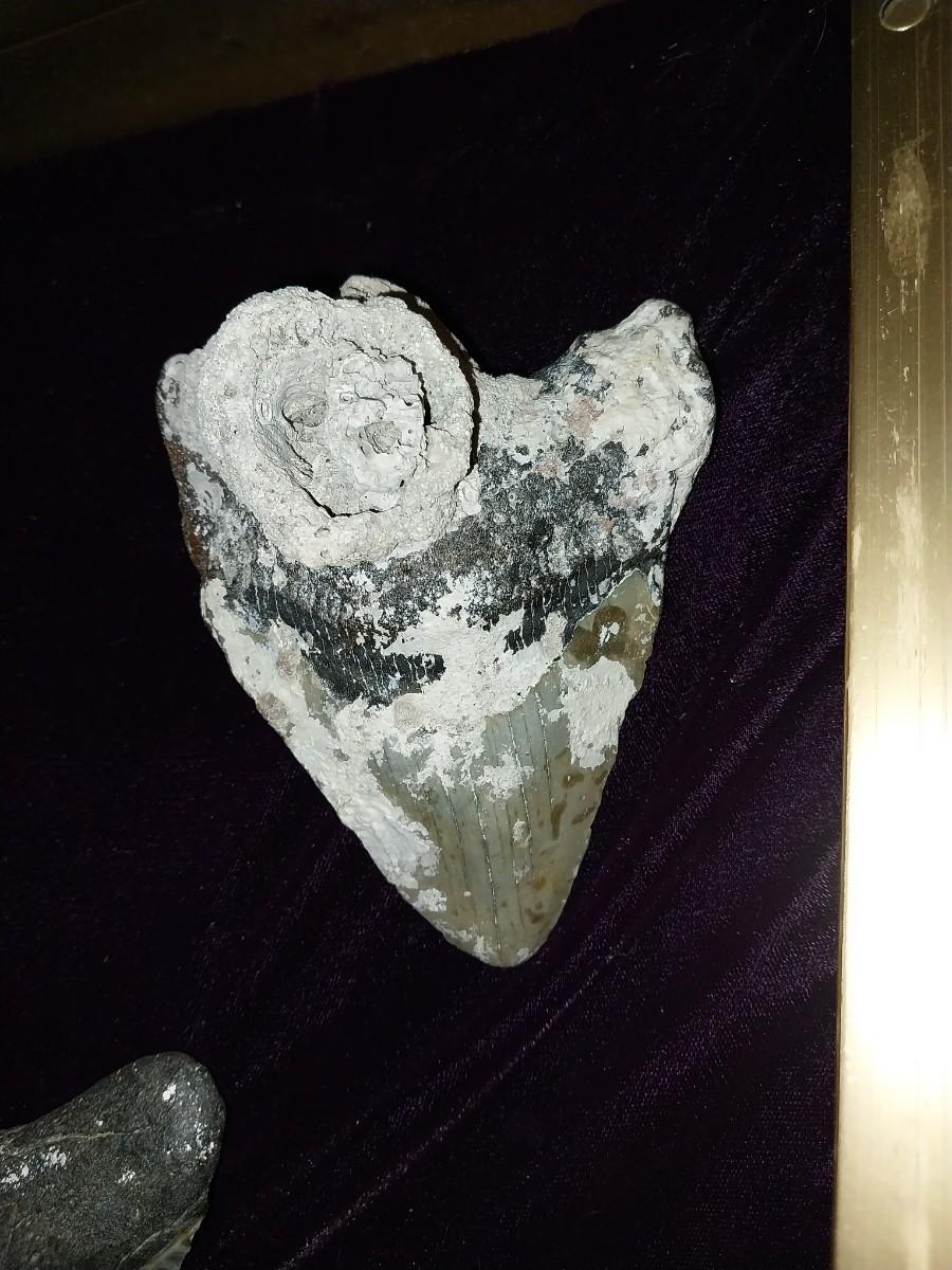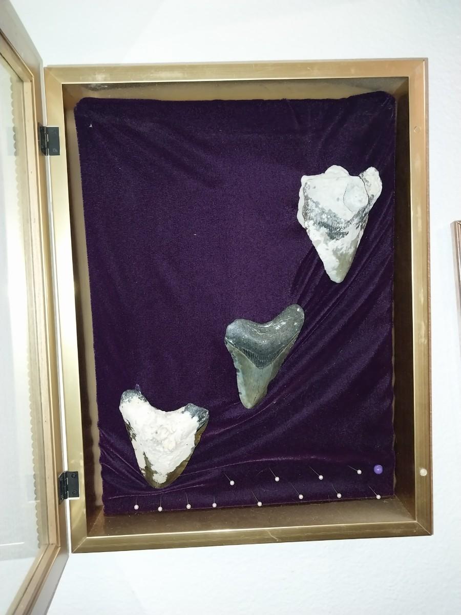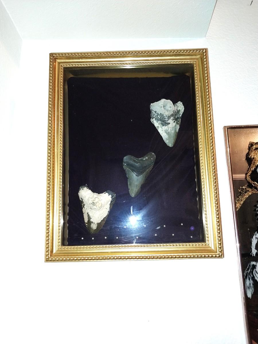 DISPLAY CASE WITH FOSSIL ARROW HEADS AND GOLD TONEMIRROR WITH NATIVE AMERICAN THEME