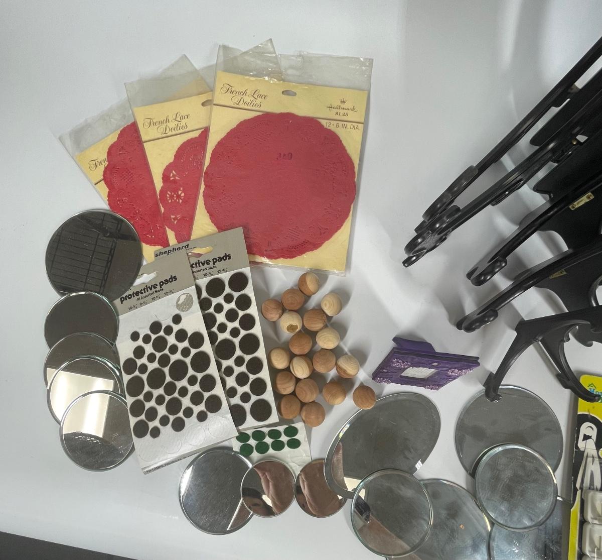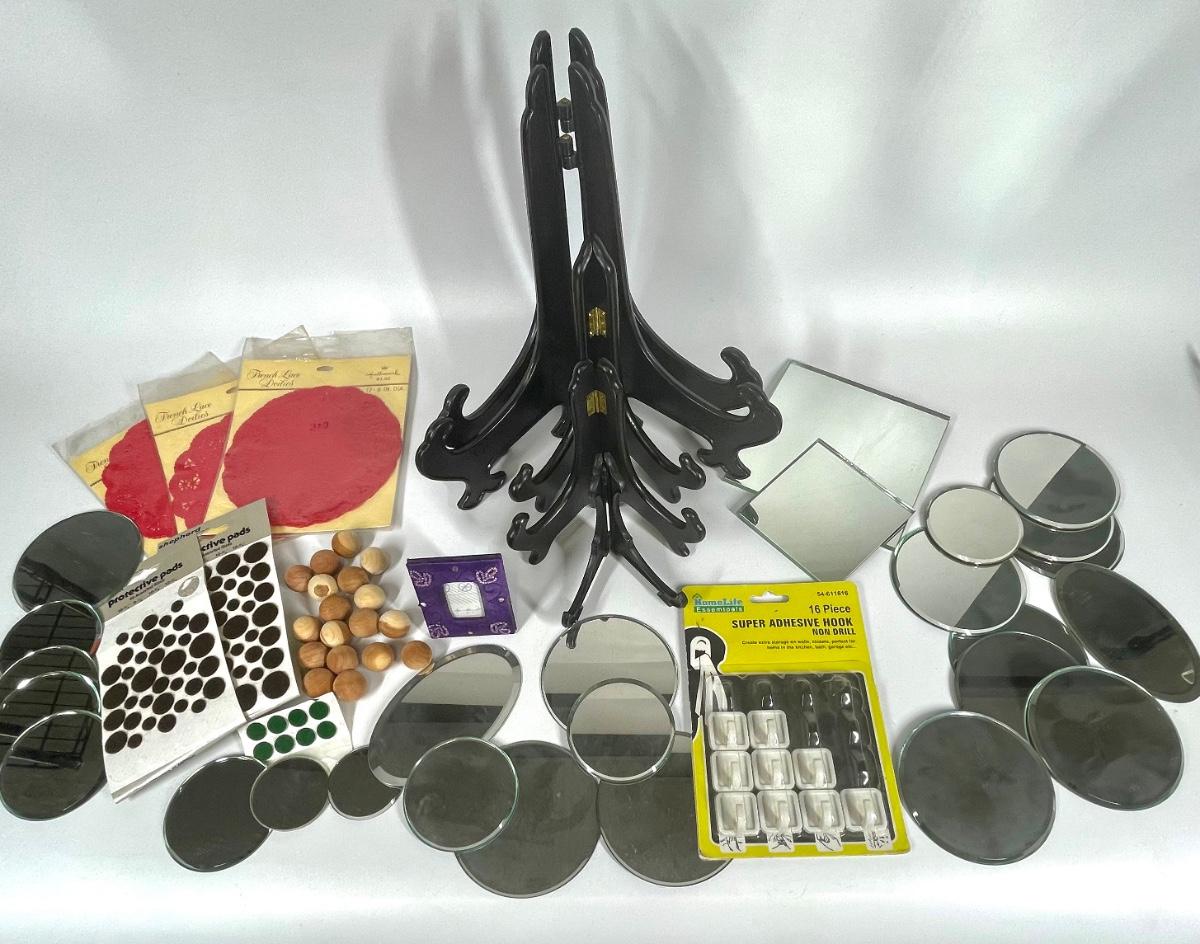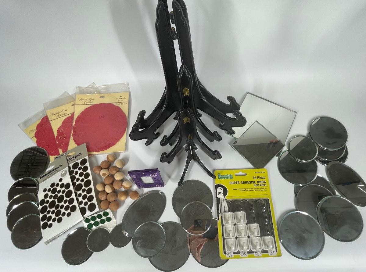 Display Equipment Lot - Plate Holders, Mirrors, Paper Doilies, Felt bumpers, Hooks & More