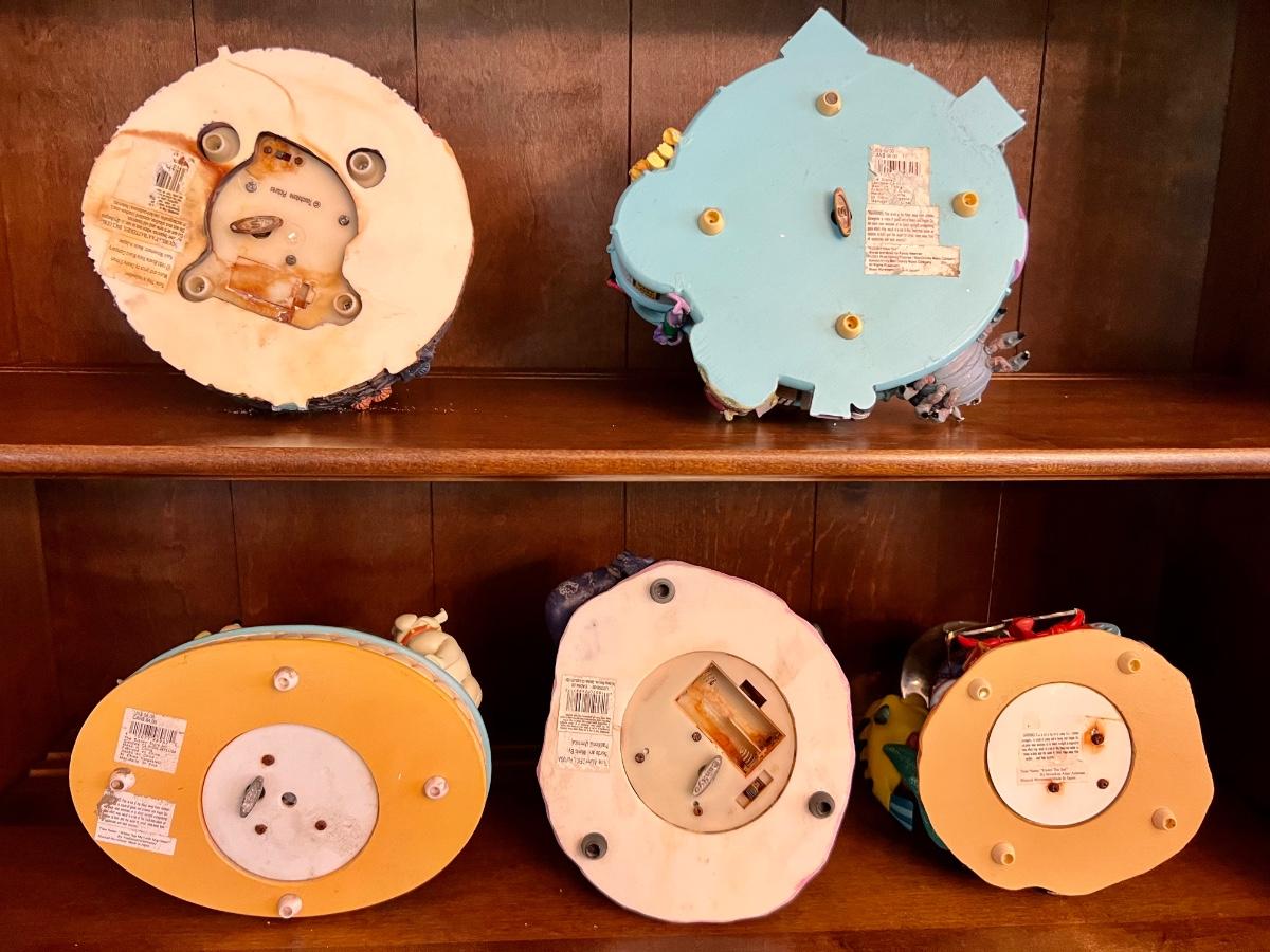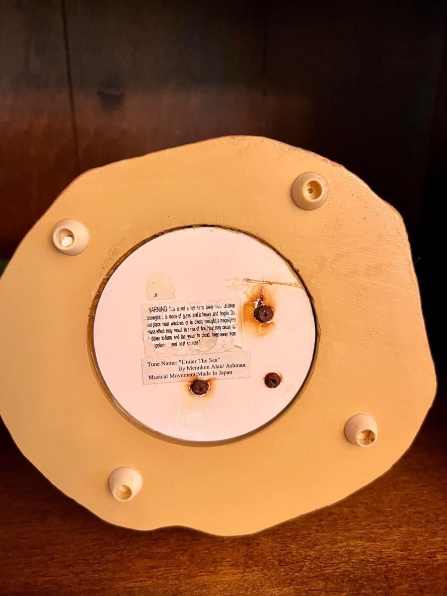 **NOT WORKING** these DISNEY GLOBES have been in the attic. They DO NOT WORK, do not play music HOWEVER they are very pretty to look at. In this lot is Ariel and the Little mermaid, Lilo and stitch, Walt Disney, Mickey Pluto, etc., monsters, Inc. and Halloween town. All measure approximately 8 inches tall and approximately 8 inches wide. Please see pictures as the batteries were left in so there is some corrosion. Again, these do not work, you are bidding on display globes only.