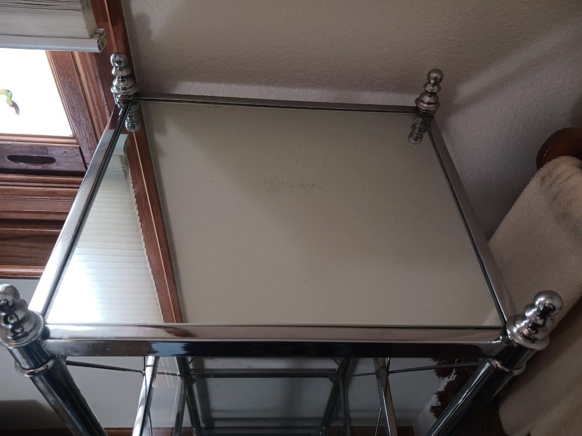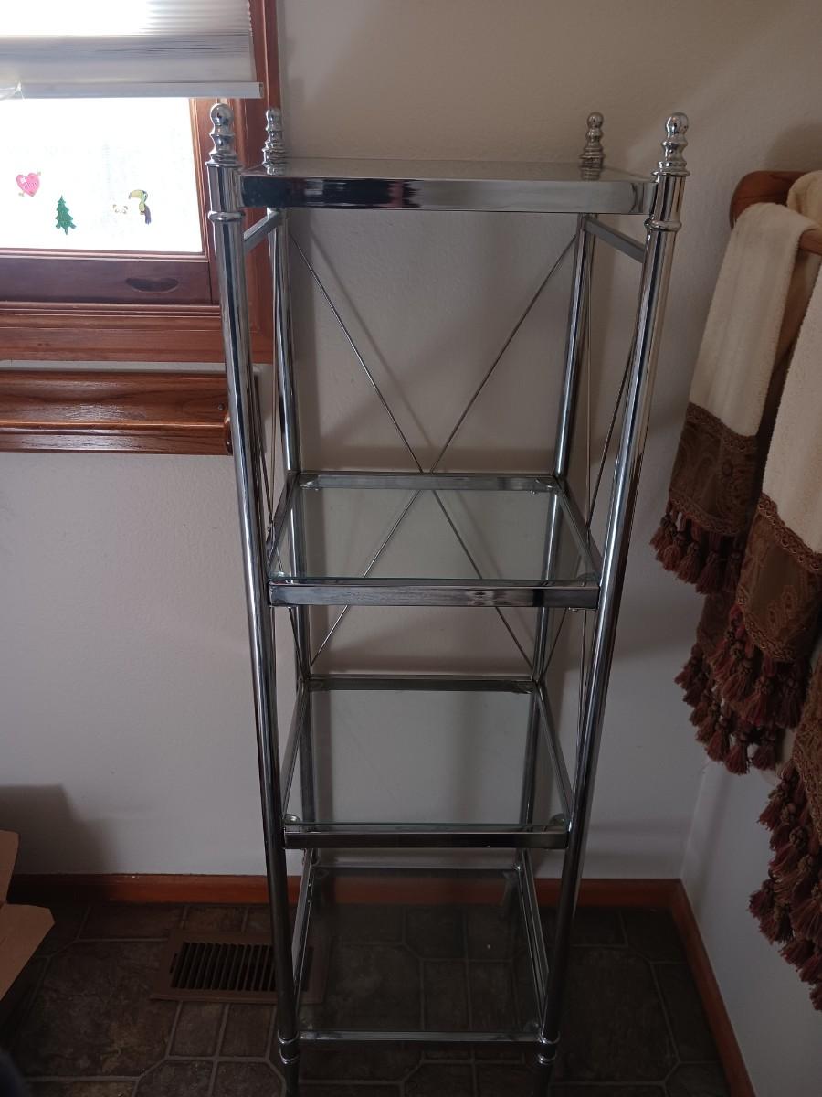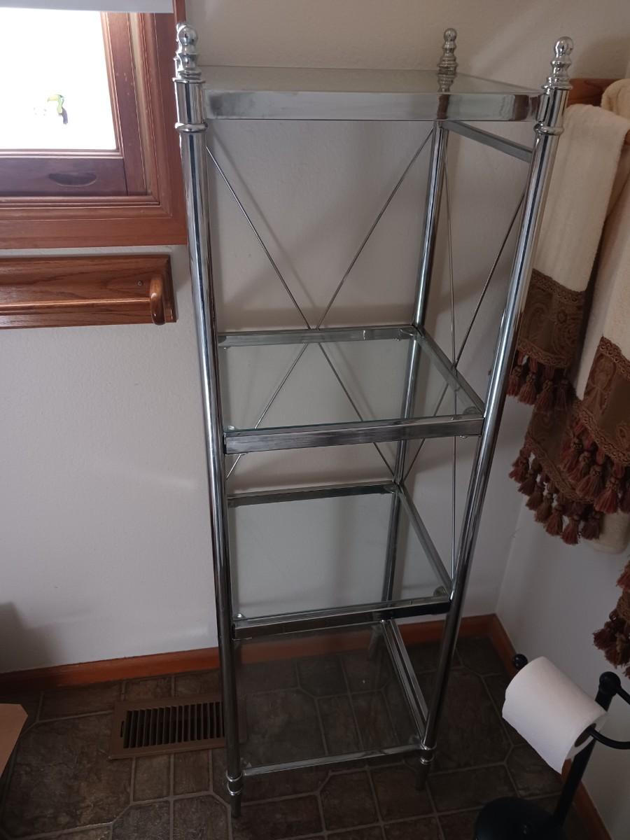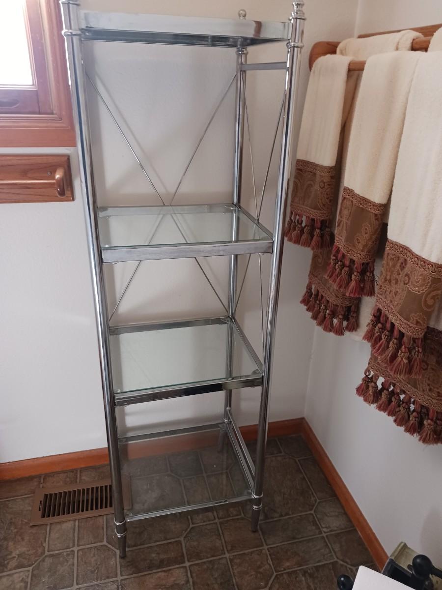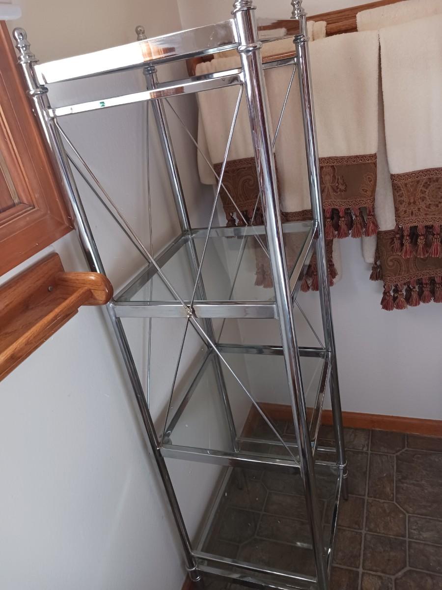 METAL DISPLAY SHELF WITH GLASS SHELVES ( 15x13x52 )