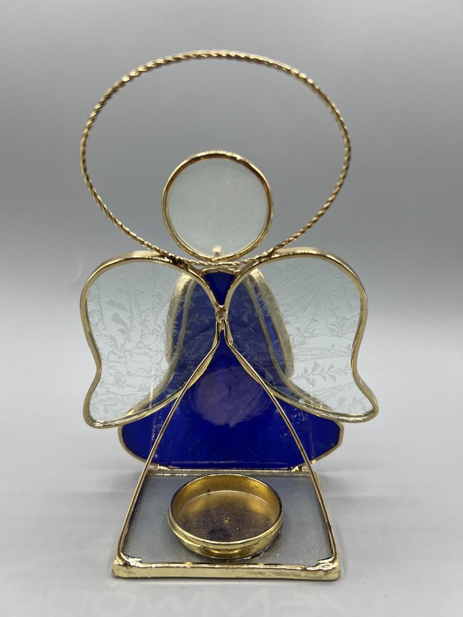 Displayable Metal & Glass Angel with Trumpet Tealight Holder