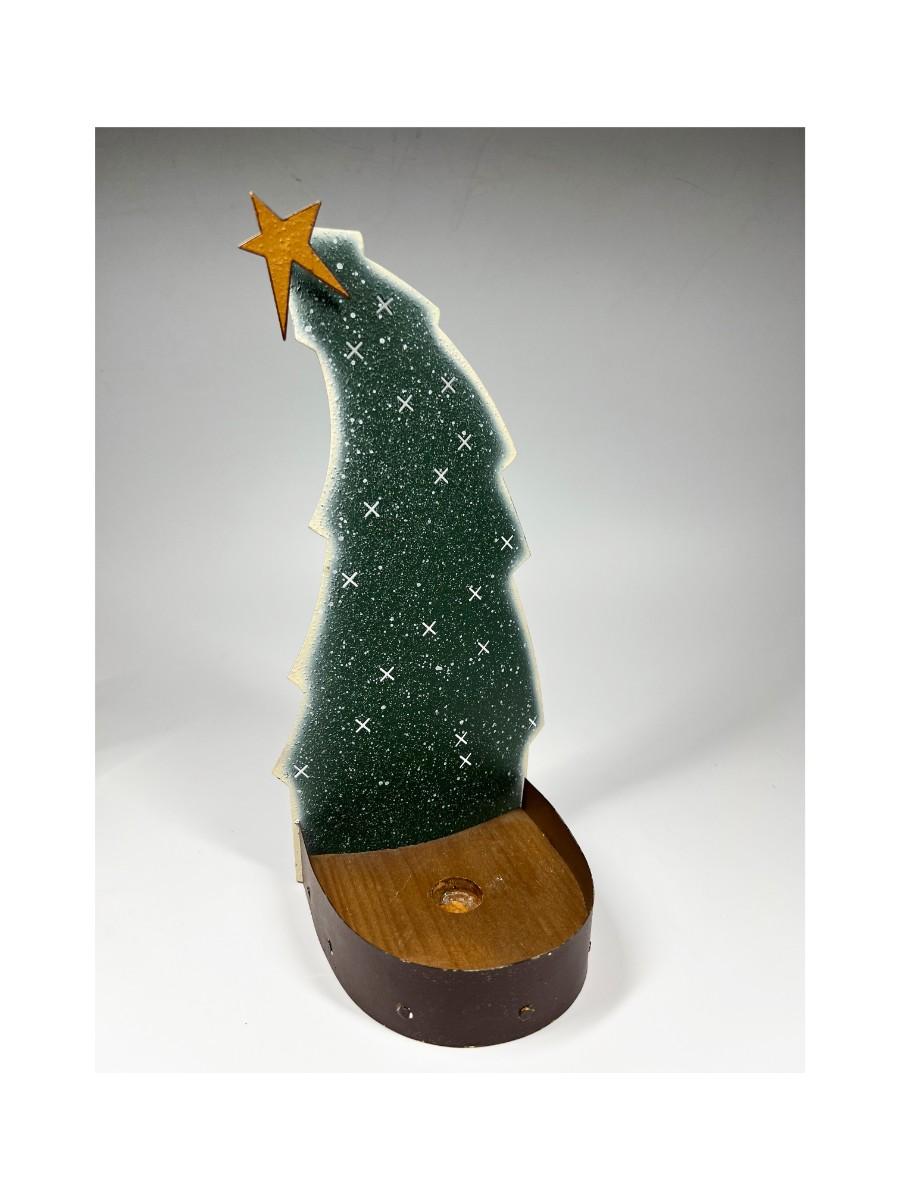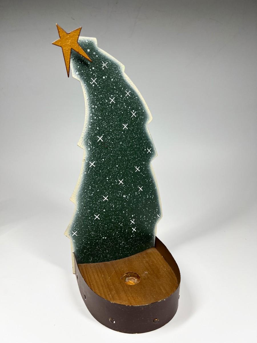 Displayed Tin Metal Christmas Tree Single Candle Holder