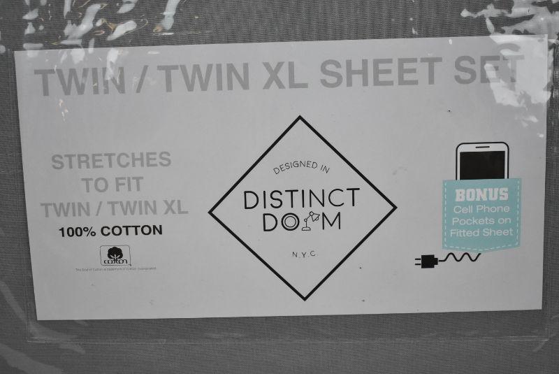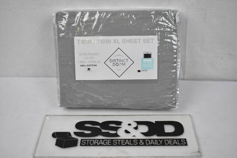 Distinct Dorm 200 TC Sheet Set with Cell Phone Pockets Twin/Twin XL, Gray - New
