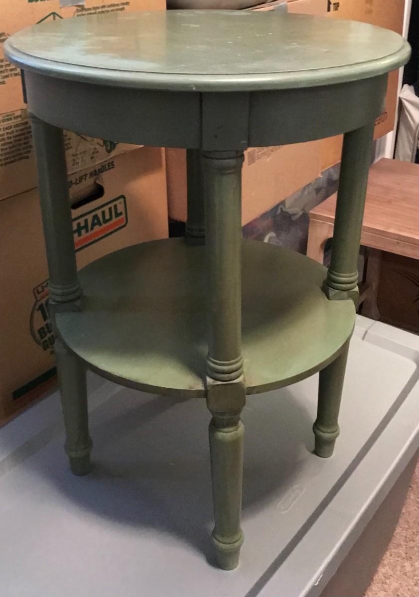 Darling distressed green side table with 2 tiers 26" tall x 18" across