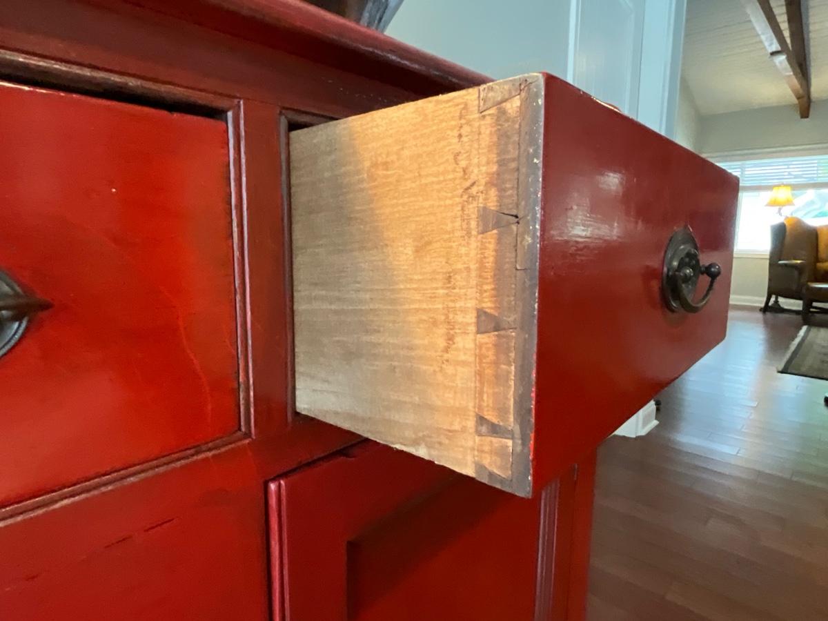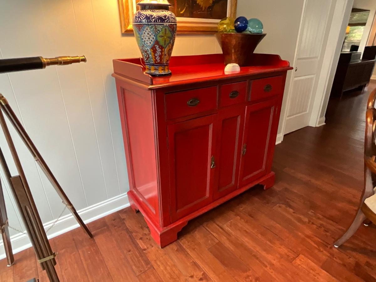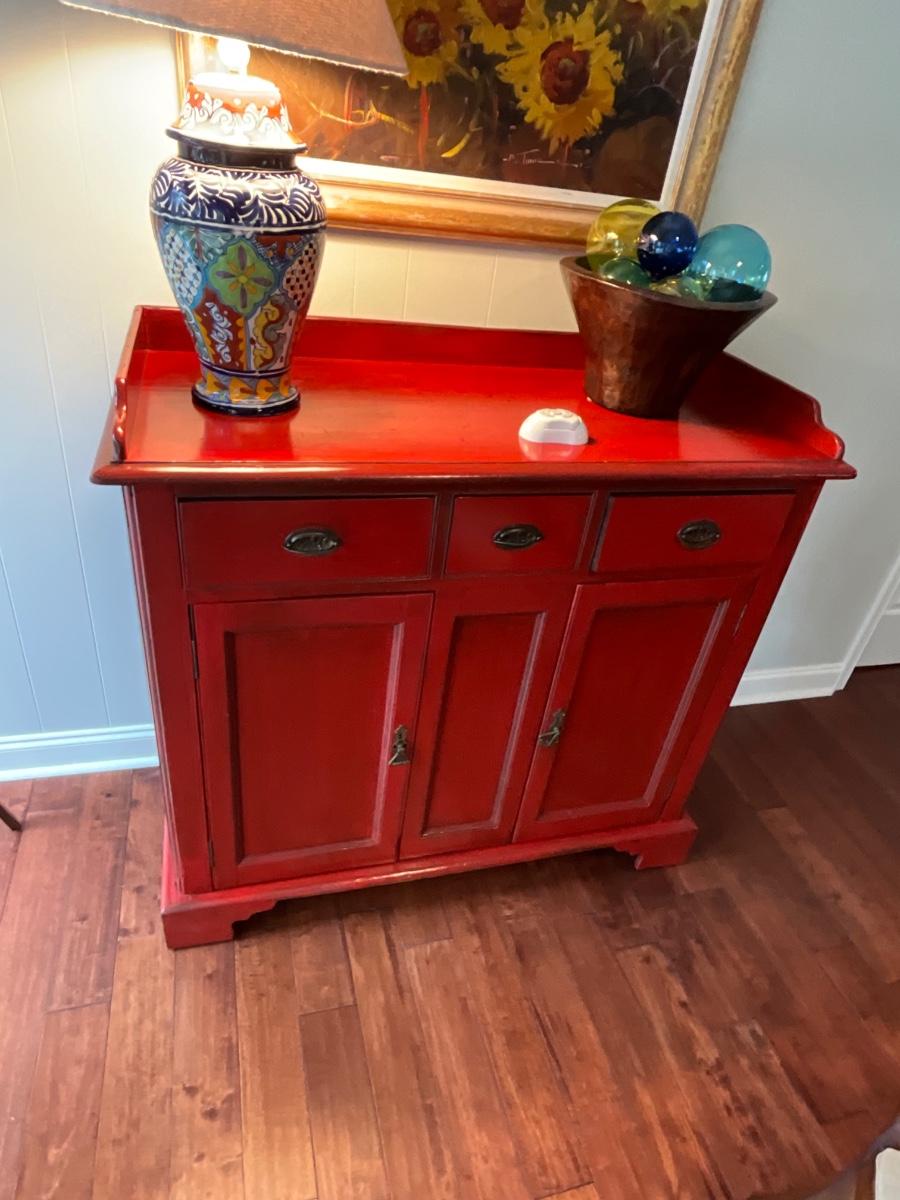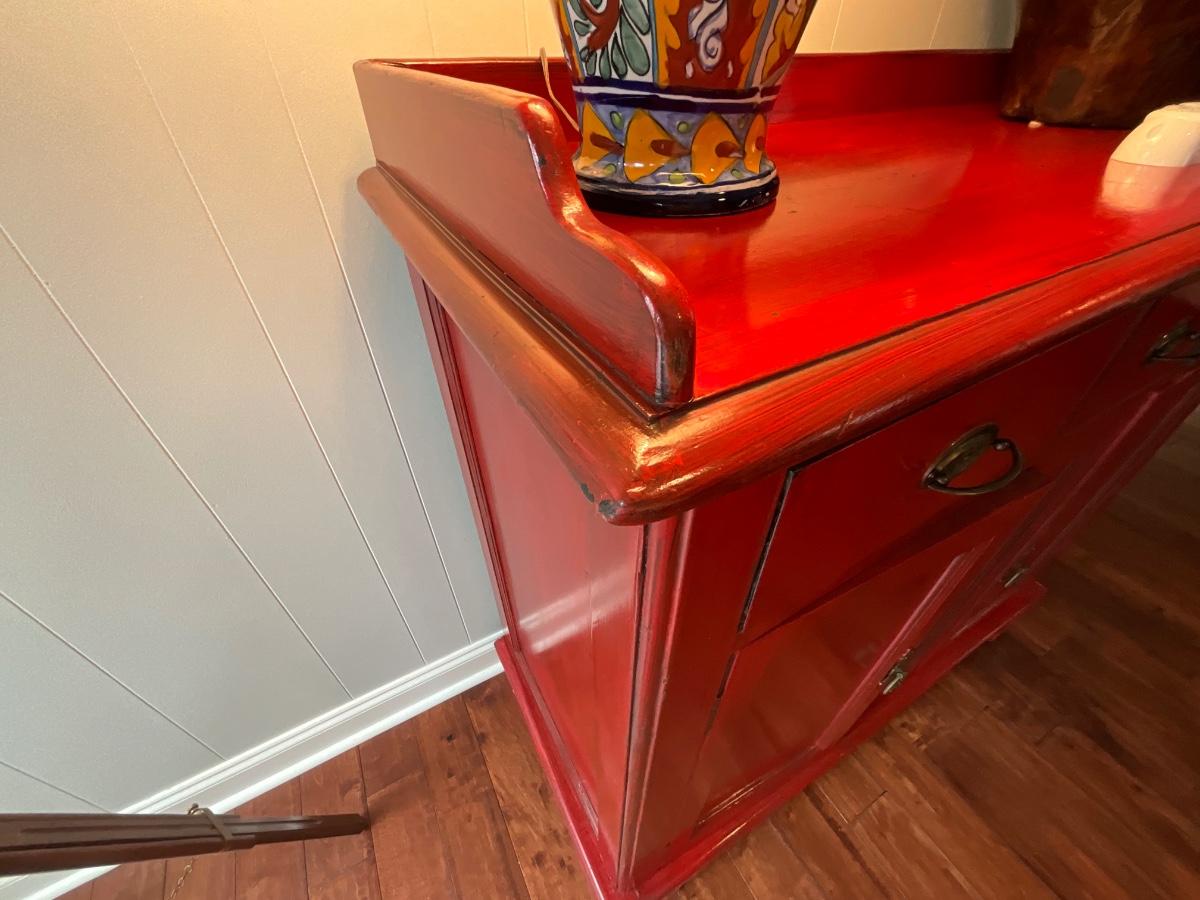 Distressed Asian Red Storage Cabinet