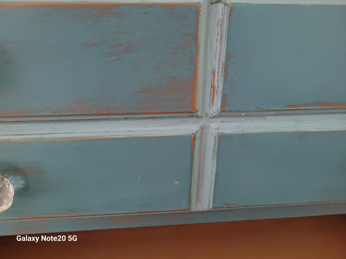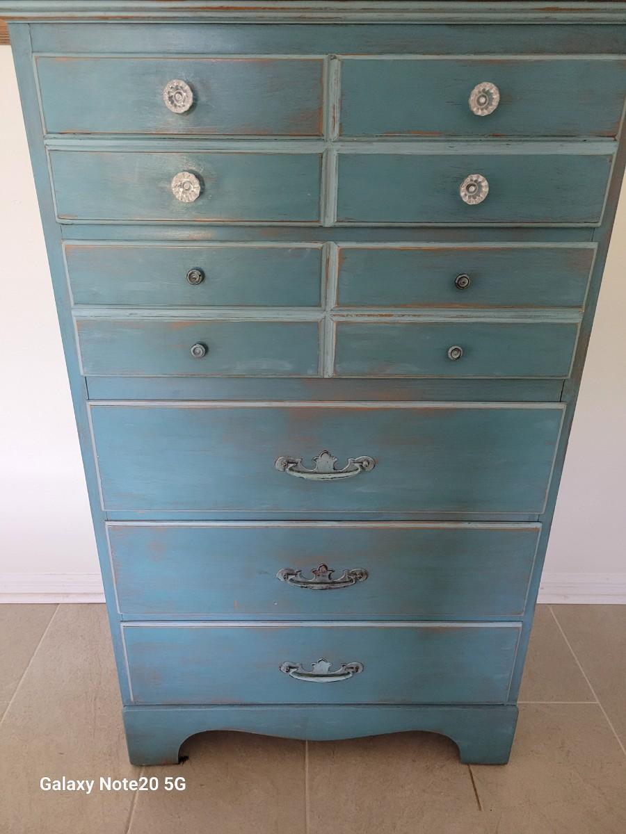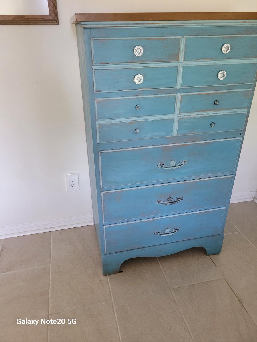 Very nice distressed chest of drawers. 49"x 36" x 18". Nice size. No nicks or chips