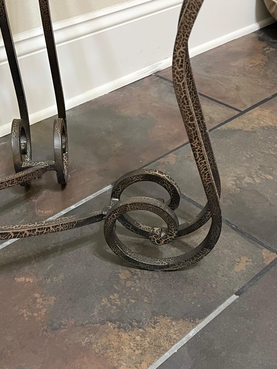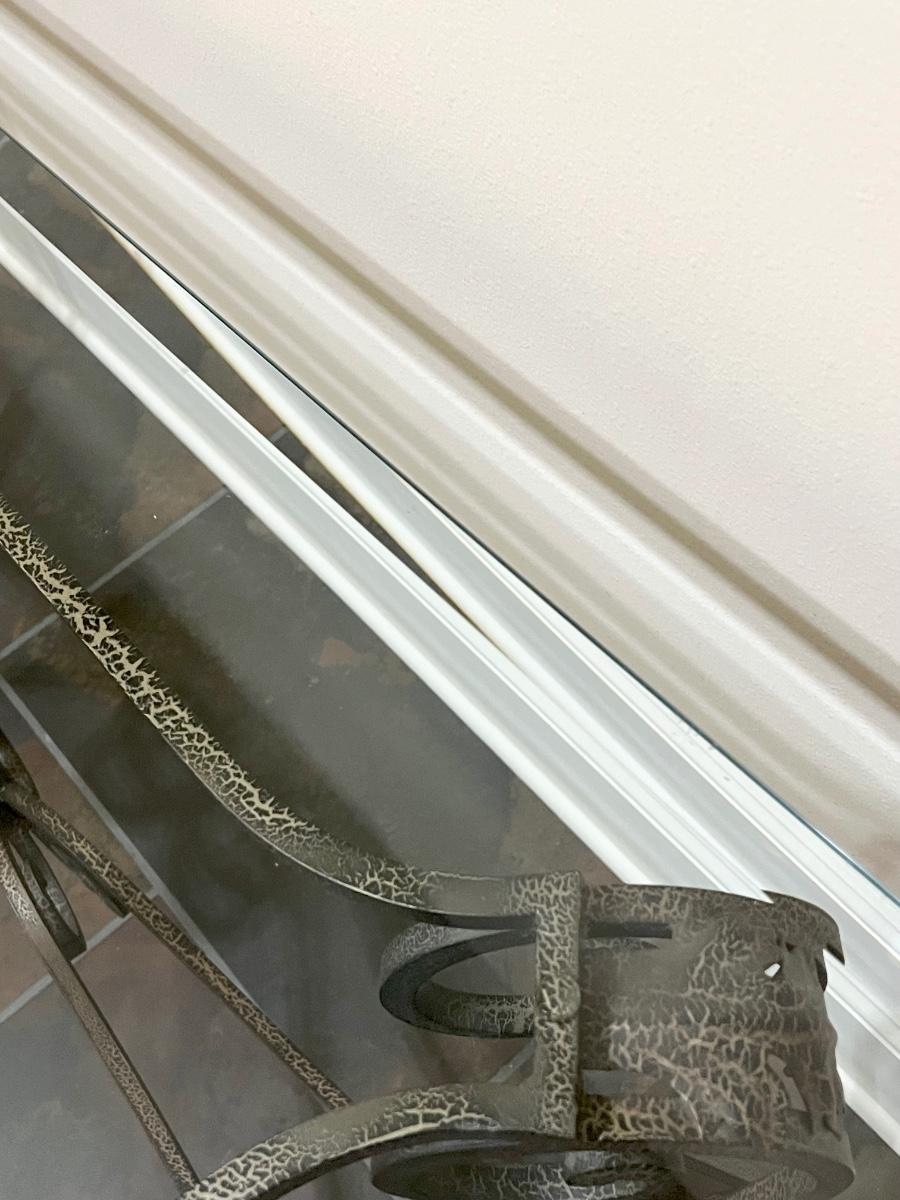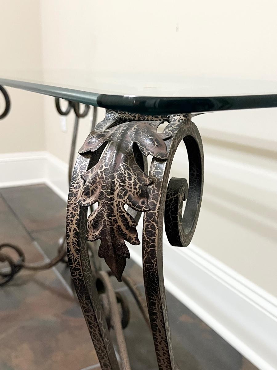 Glass has minor surface scratches ~ Metal base is medium weight ~ No brand ~ 27” H x 50” W x 18” D
