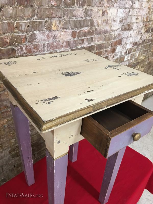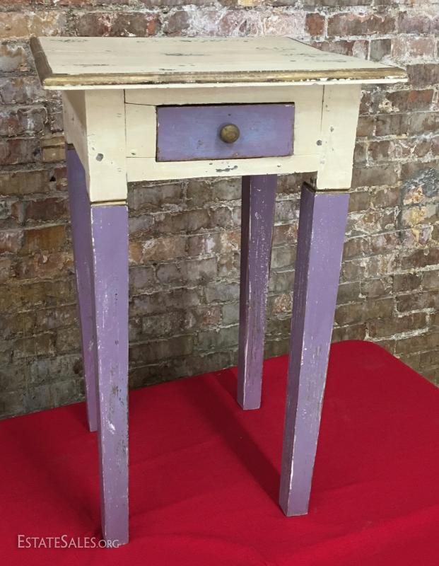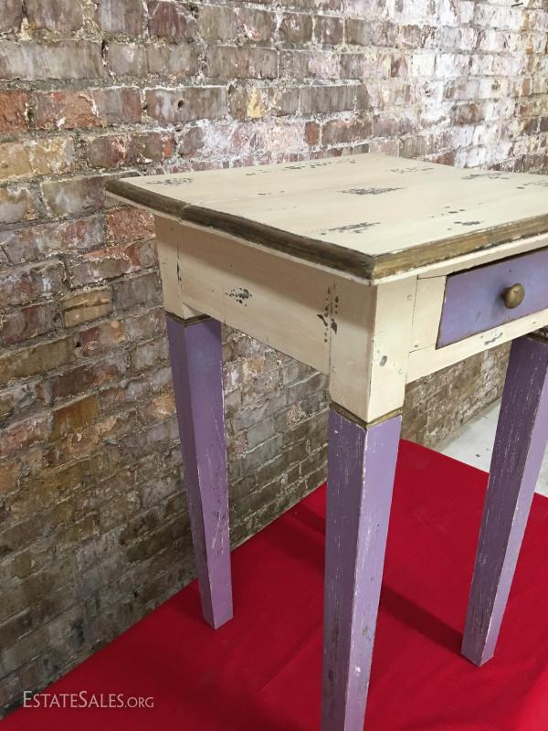 Distressed Painted Lamp Table w/Drawer, lavender & cream...