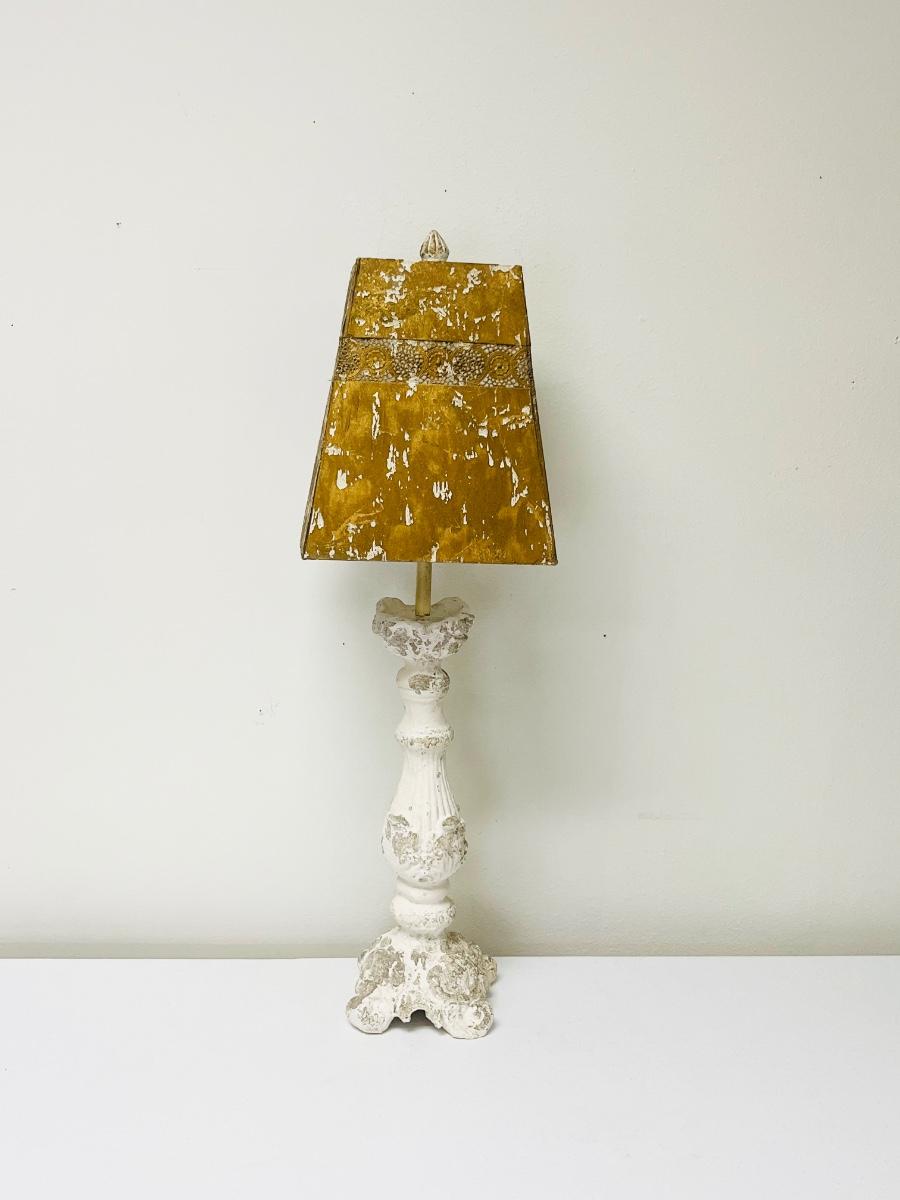 Distressed Table Lamp ~ Gold Metal Pierced Shade