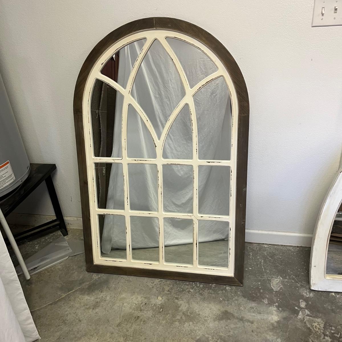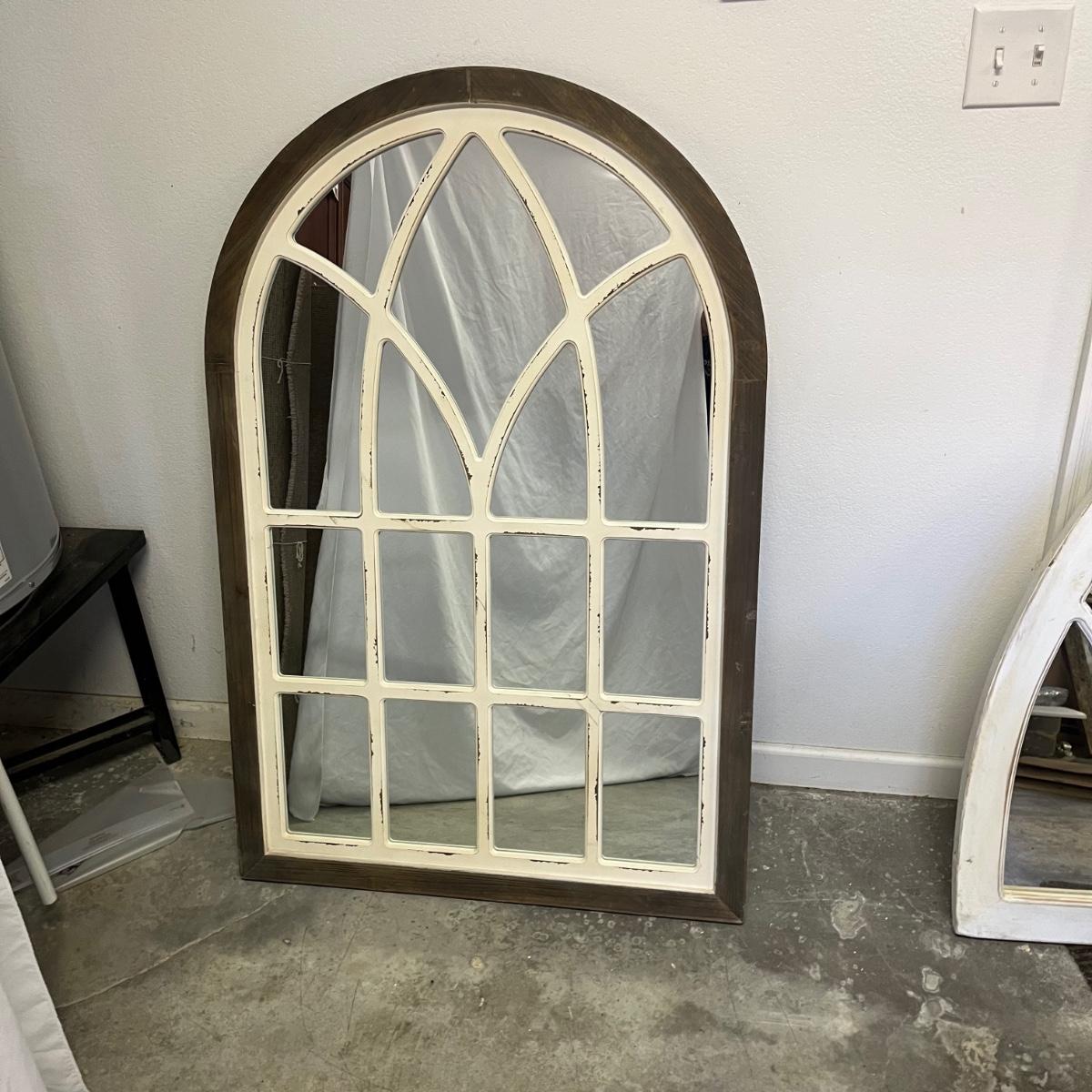 These two mirrors have wooden frames that are made to look like windows. Largest mirror measures 32” x 48”.