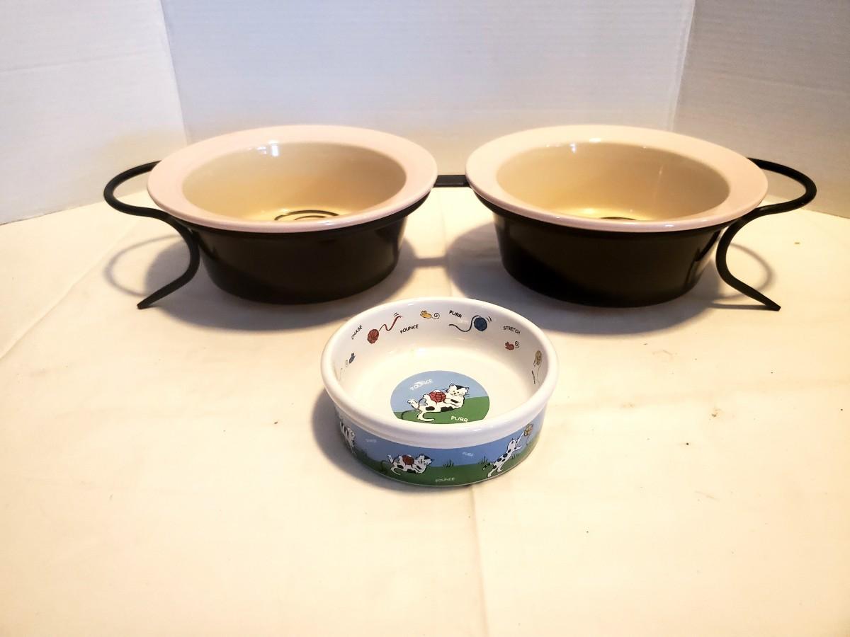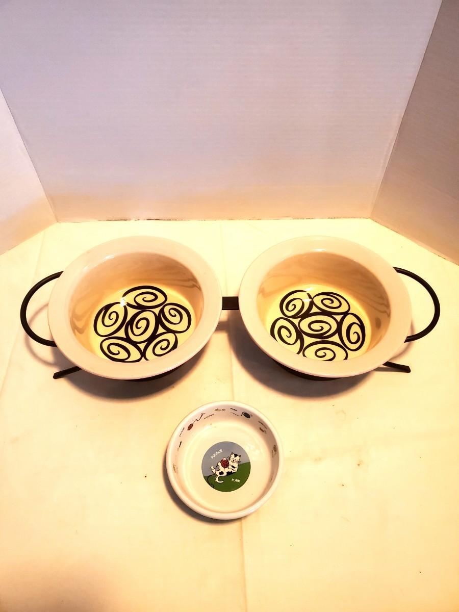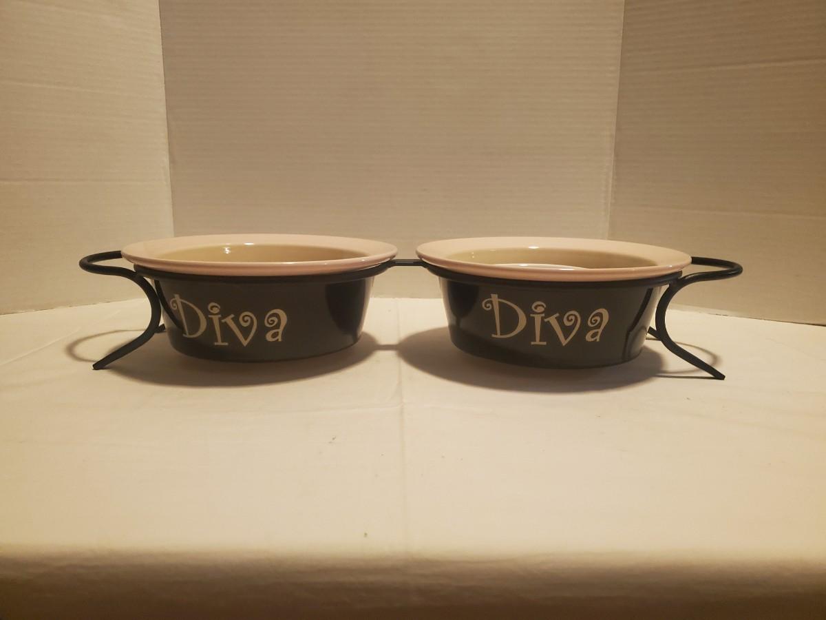 Diva Pet Food Bowls with Stand in Pink & Black + Small Bowl