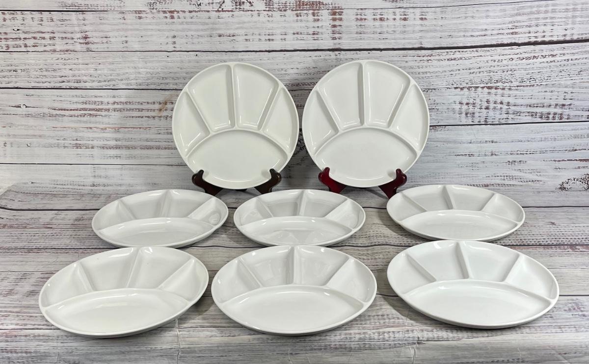 Divided Dinner or Luncheon Plates, White, ceramic, Unbranded