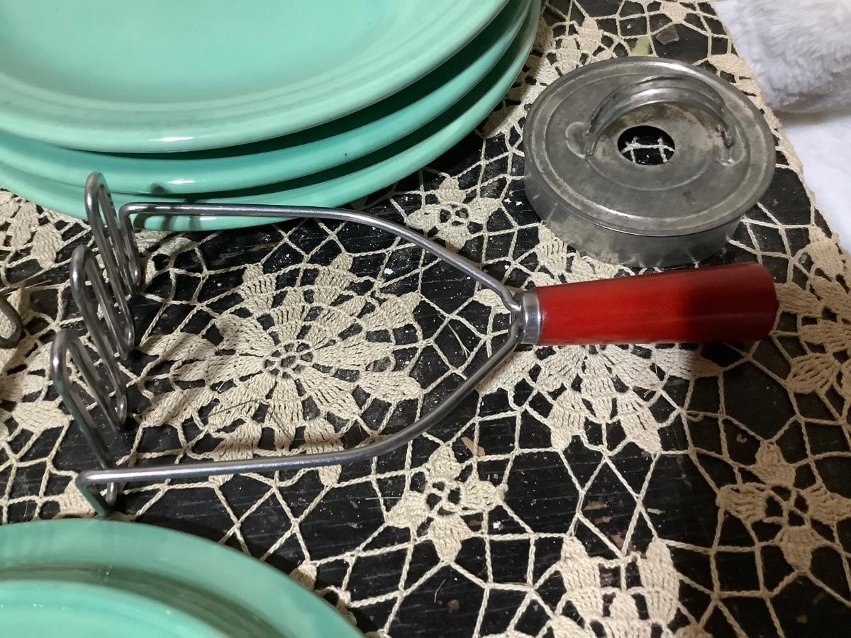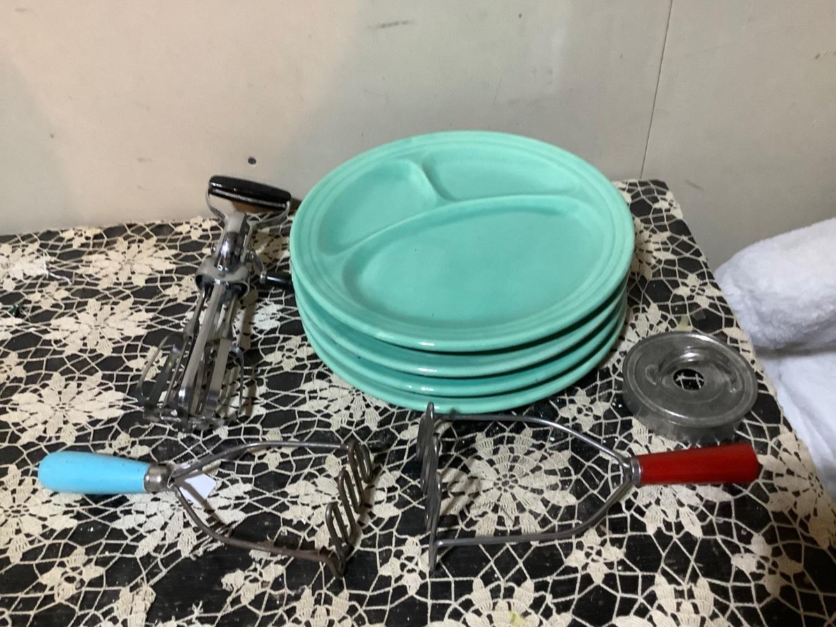 Divided Dinner Plates Hand Masher Hand Mixer and Cookie Cutter