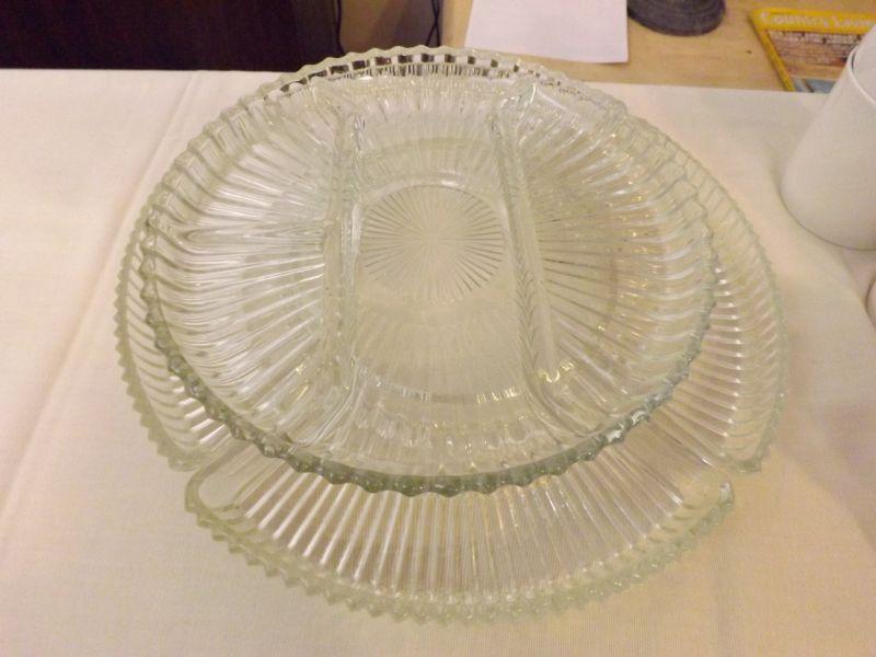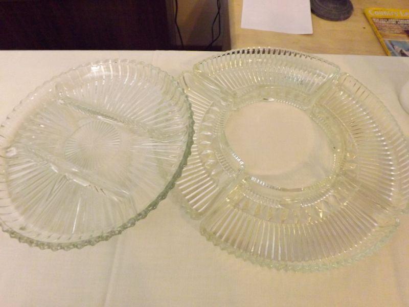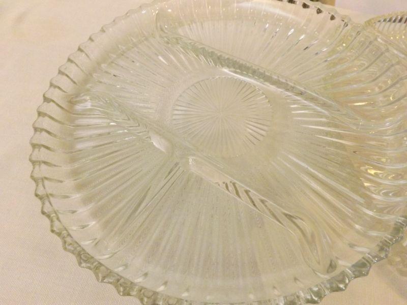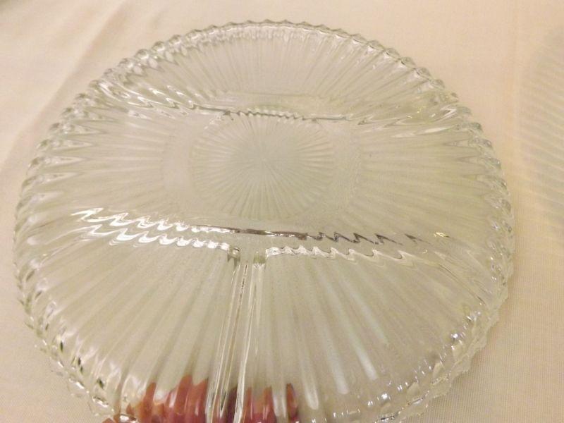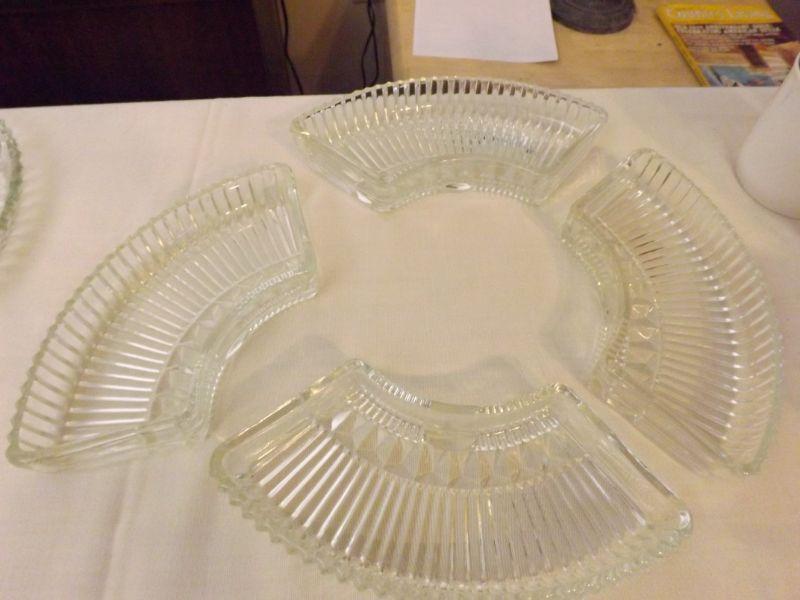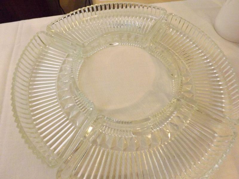 Divided plate for pickle tray and 4 piece dish set to go around center dip. **Please read Terms and Conditions before placing a bid. Pick up is Sunday, September 15, 2019 from 11am to 4pm and Tuesday, September 17 from 4pm-7pm in Sicklerville. All sales are final. All sales are as is, where is. Please review all photos. Any props included in photos are not included in listing. All measurements are approximate.