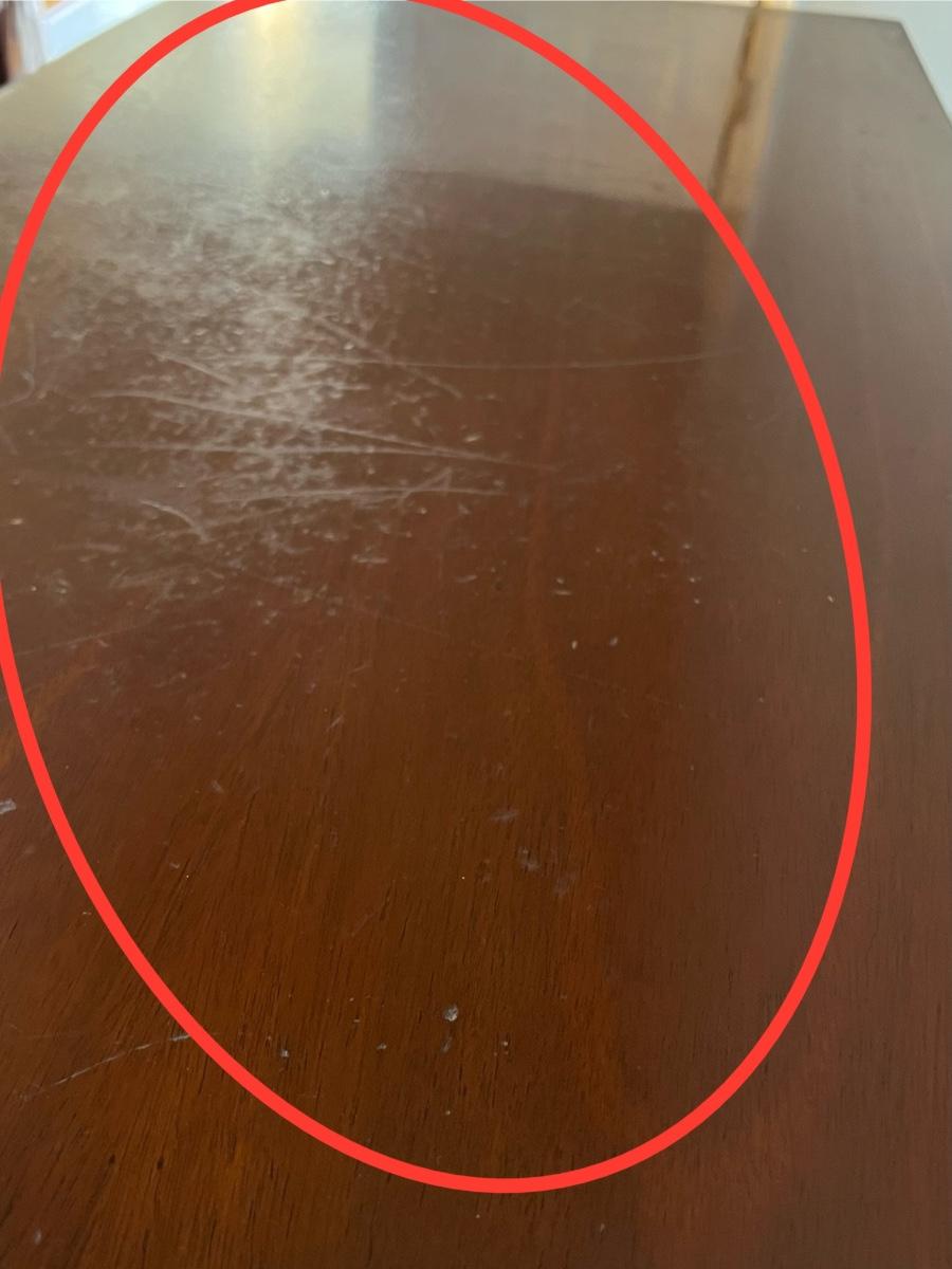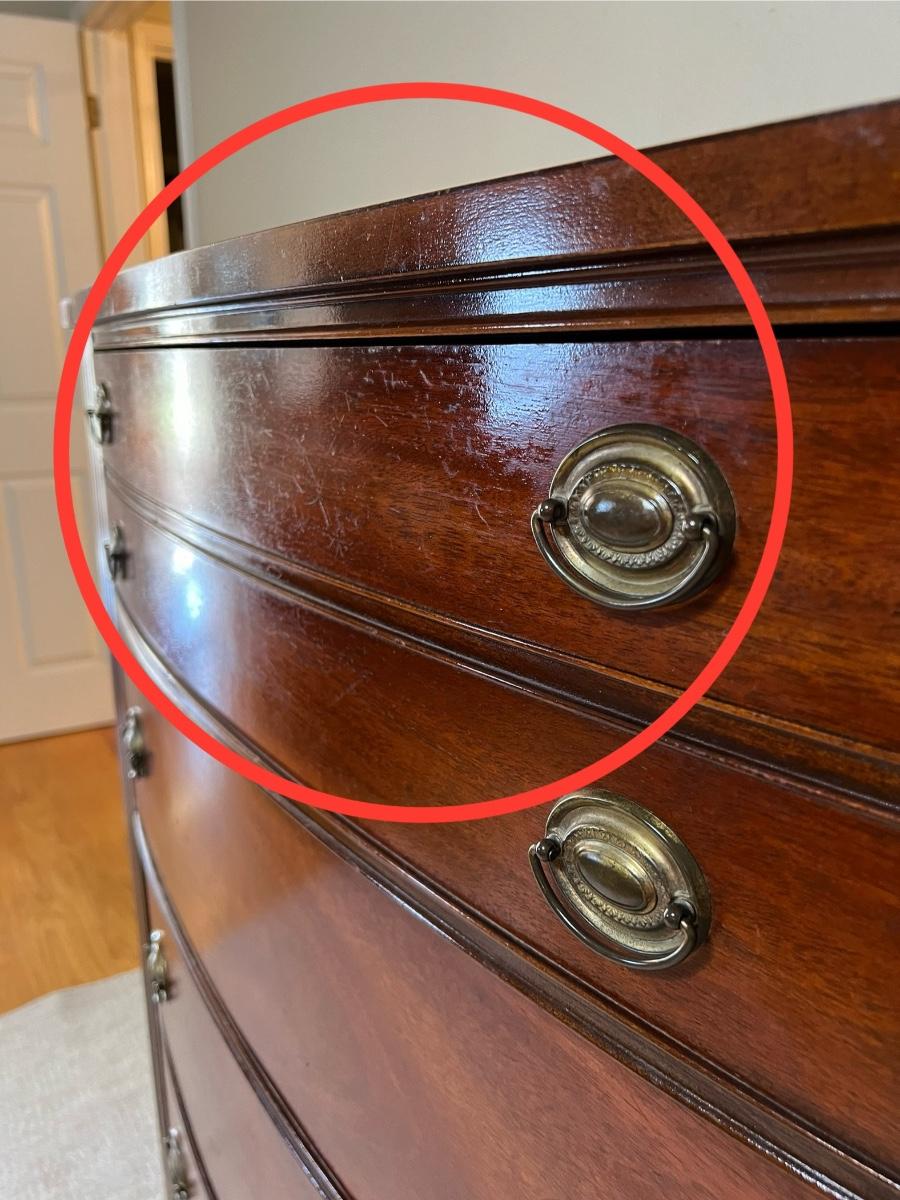 Has 4 drawers ~ All drawers slide easily ~ Has minor wear (surface scratched) from use & age ~ Possibly could use additional restoring or paint, see photos ~ 46.5” H x 36.25” W x 19.75” D