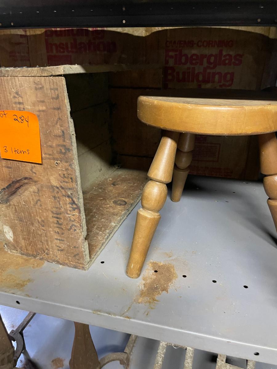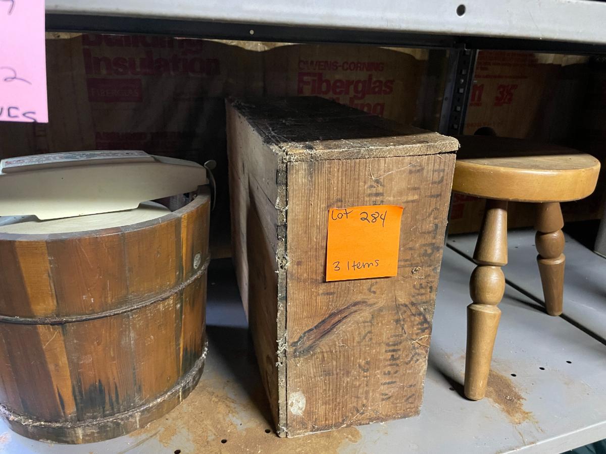 Dixie Belle Icecream Maker, Wooden Box, & Milking Stool