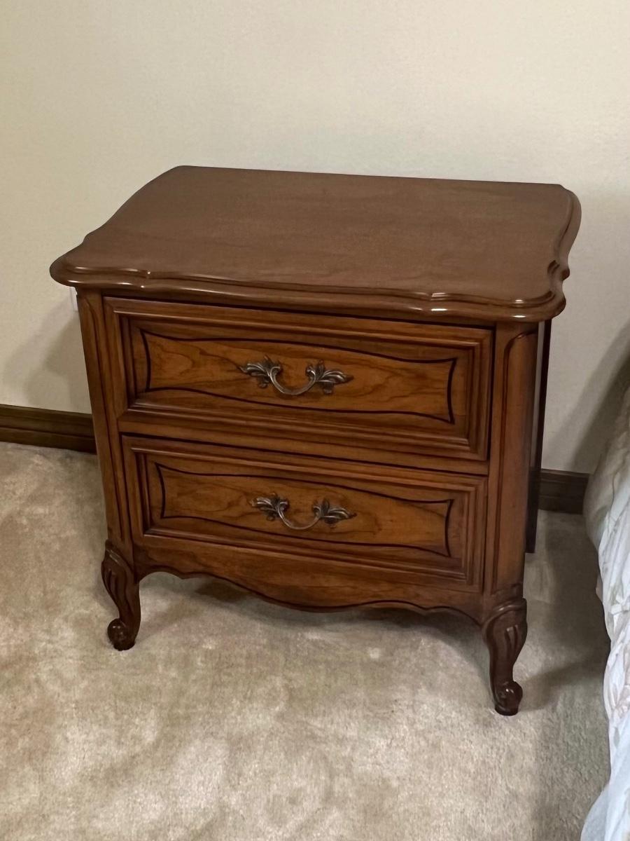 Set includes: 1 queen bed ~ 1 nightstand ~ 1 mattress ~ 1 boxspring Headboard = 40” H ~ Nightstand = 24” H x 25” W x 17” D