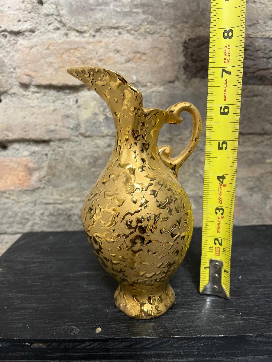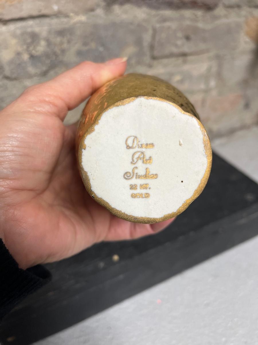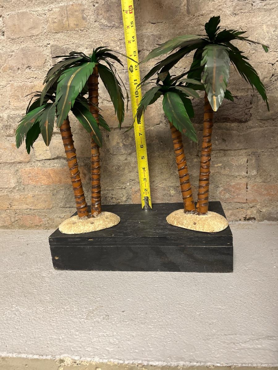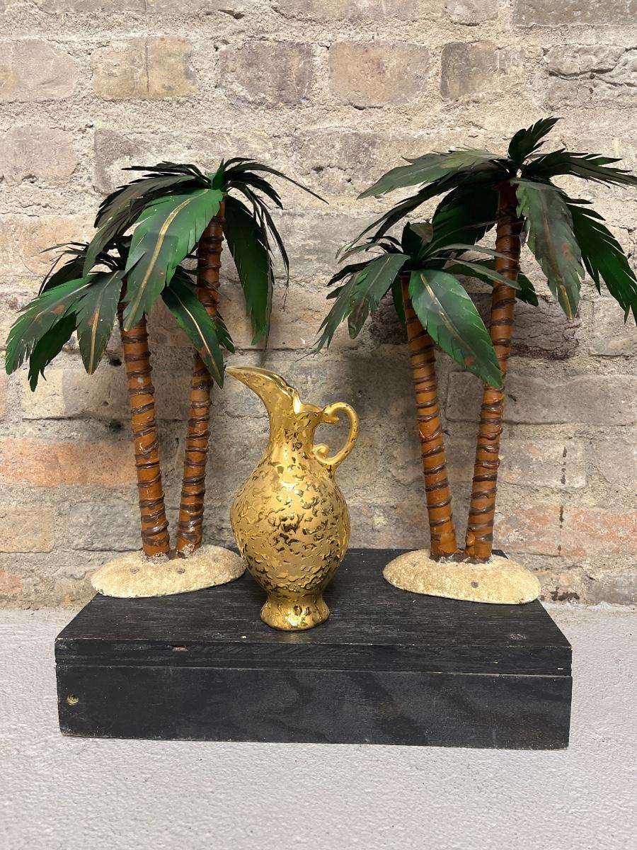 Dixon Art Studio 22K weeping gold vase and pair of metal palm trees