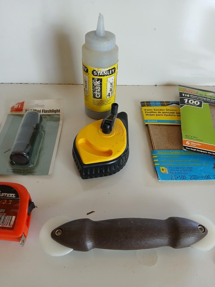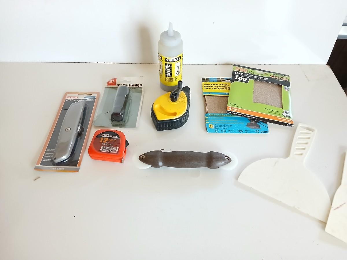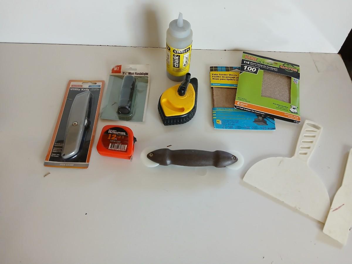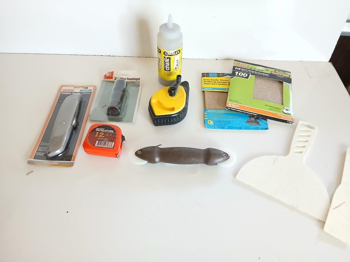 DIY Hand Tool & Repair Lot –Utility knife, chalk line and chalk, window screen tool, and more