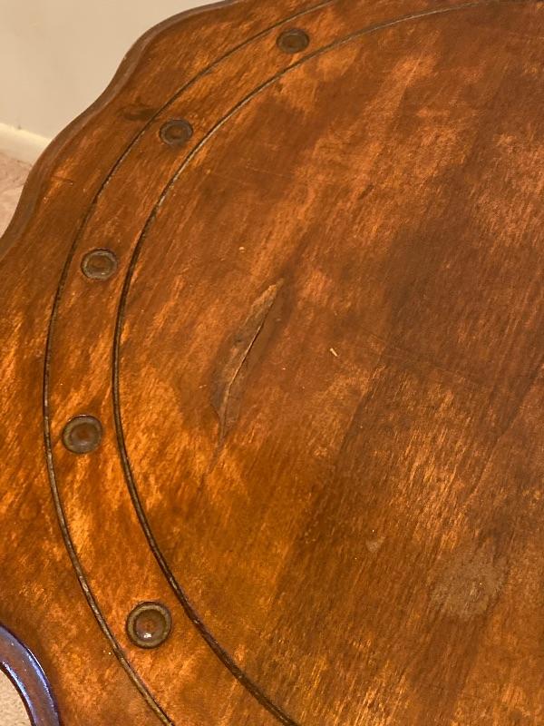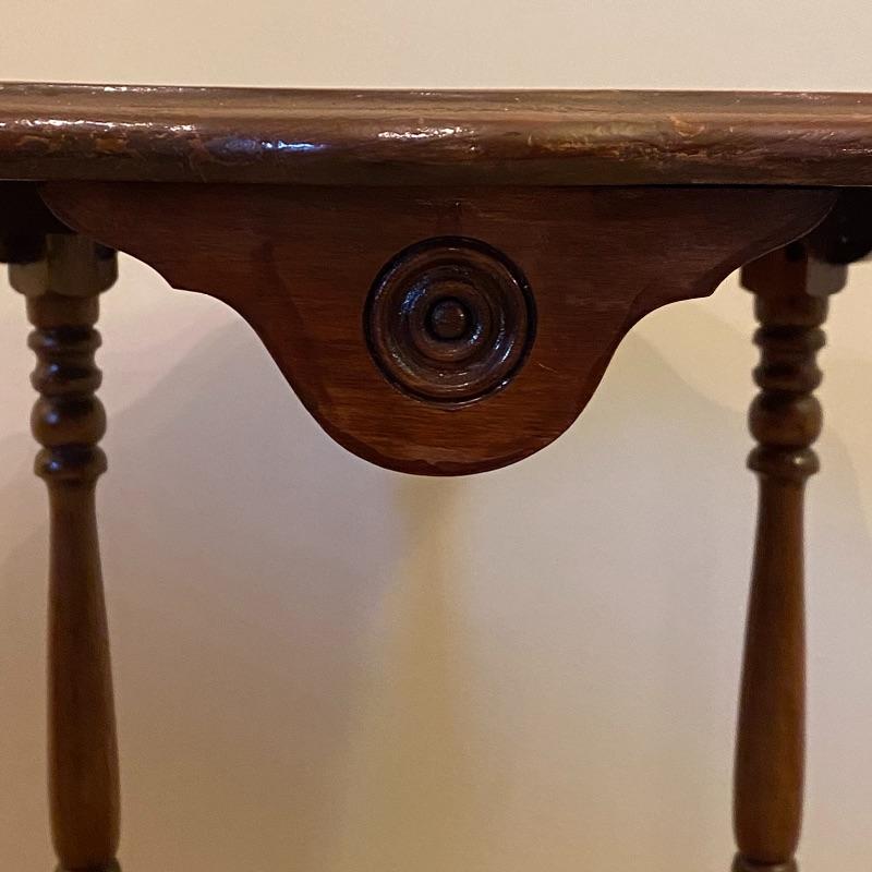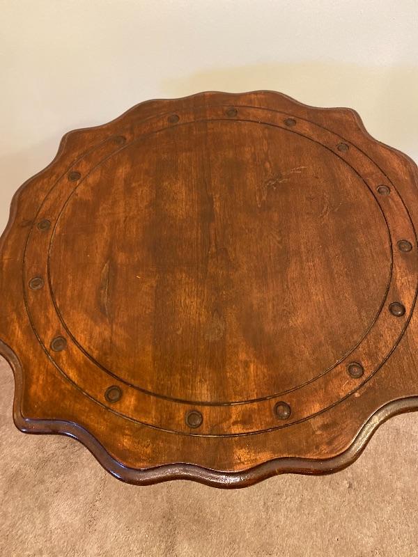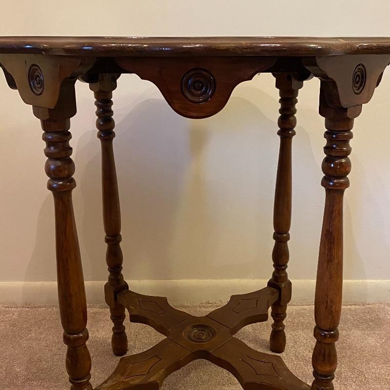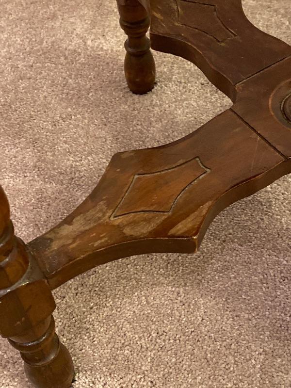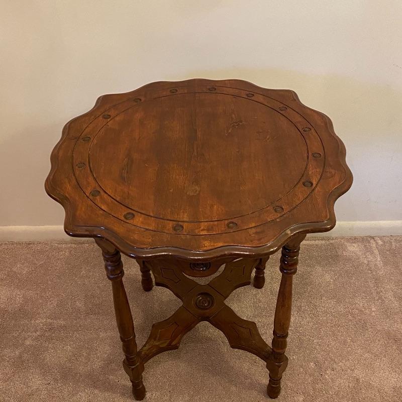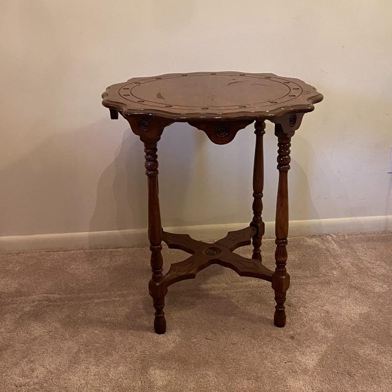 Vintage Round Wood Table with Spindle Legs & Decortative Top