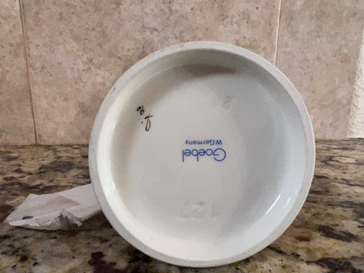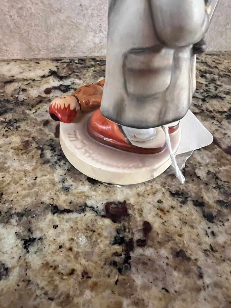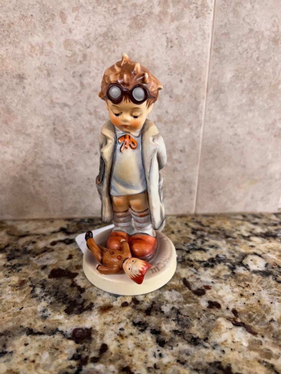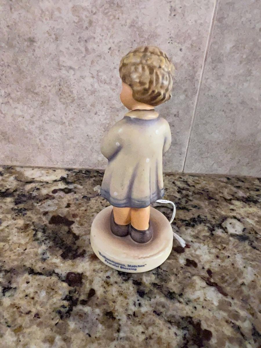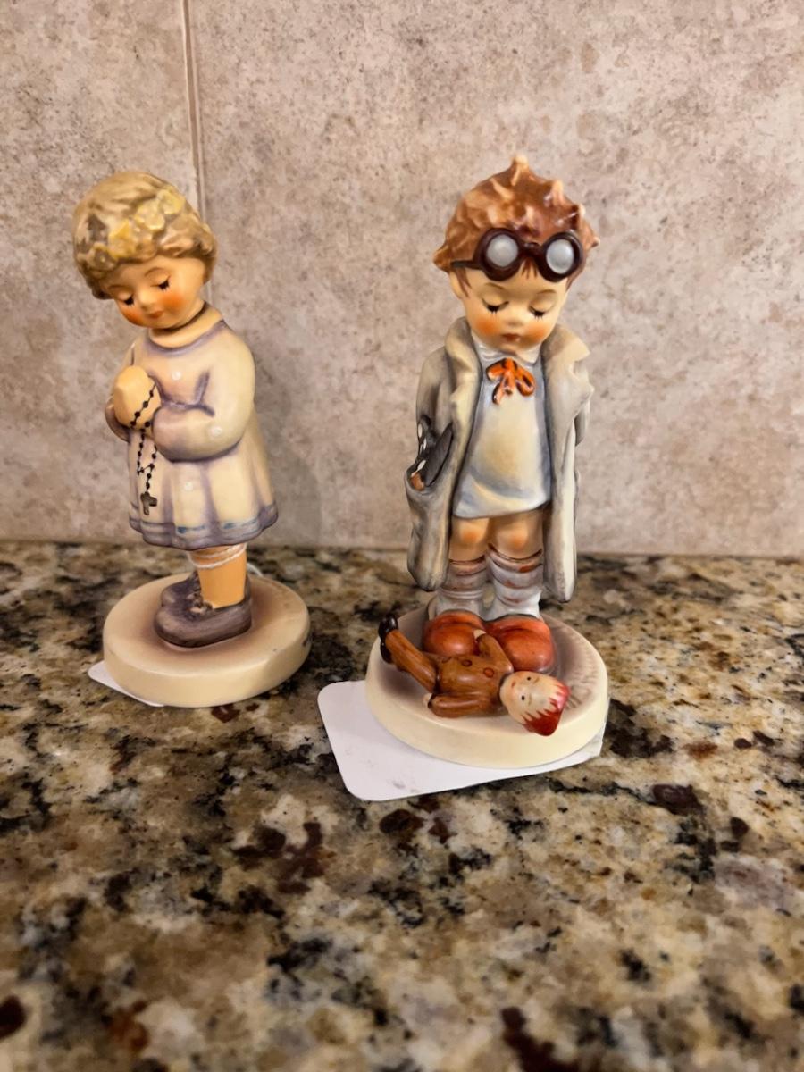 TWO MJ HUMMEL COLLECTABLES BOY LOOKING AT DOLL AND GIRL HOLDING ROSARY
