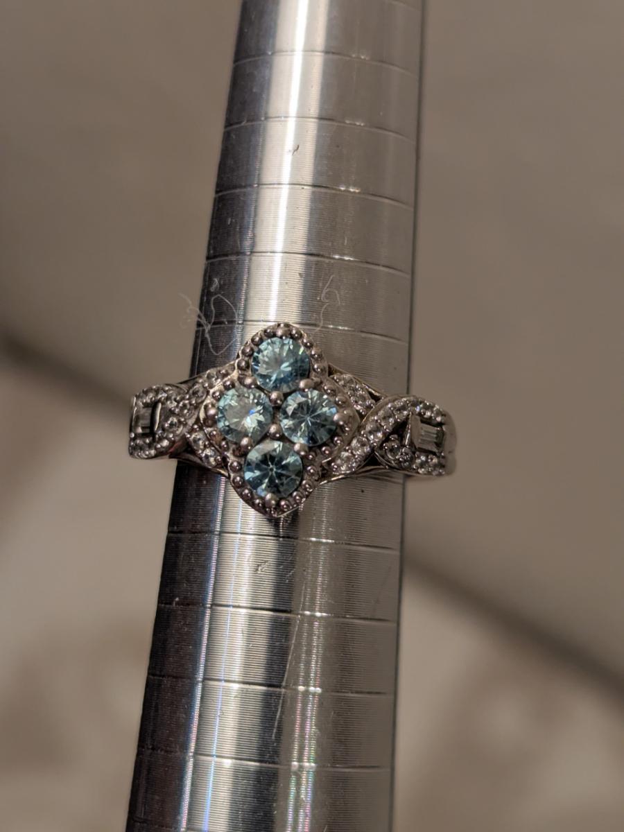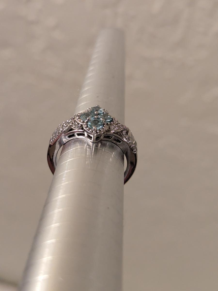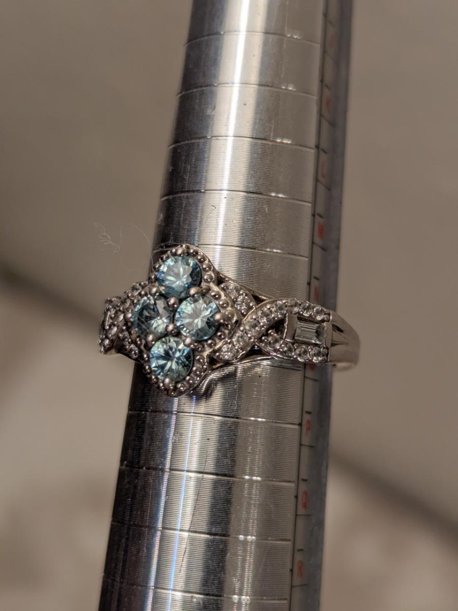 D'Joy sterling silver 925 ring size 7 with sky blue stones and clear accent stones.