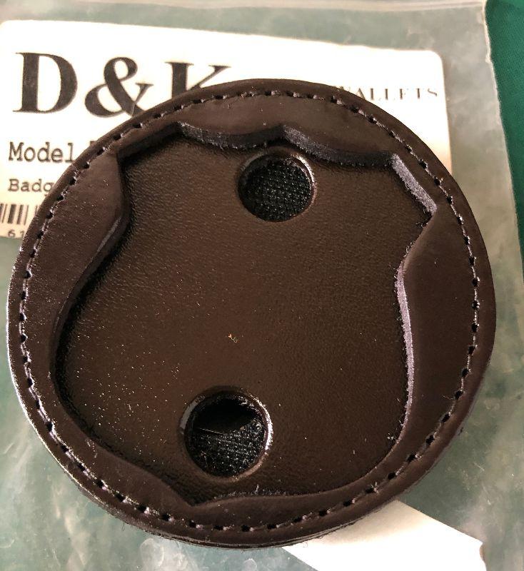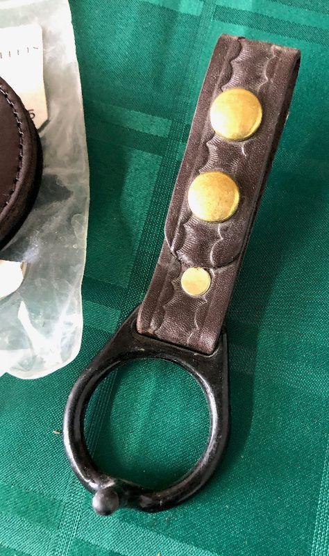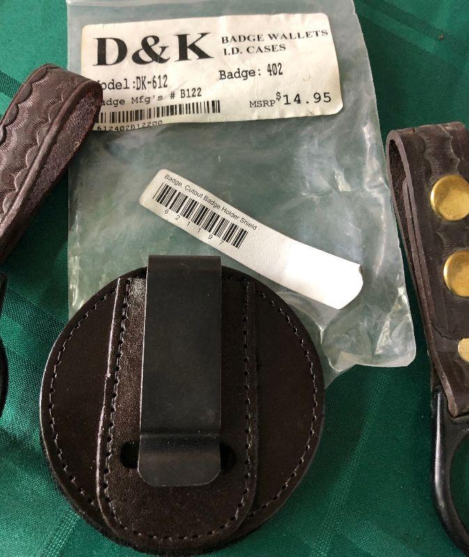 New condition...duty belt accessories..Shield style badge holder from D & K...with baton ring holders...