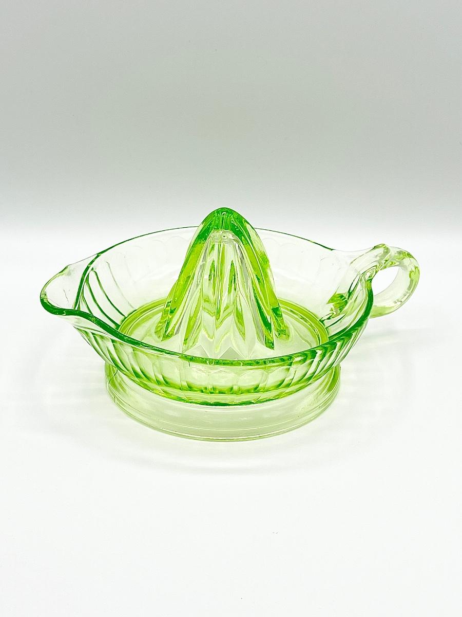 One (1) Vtg Large Uranium Vaseline Glass Juicer