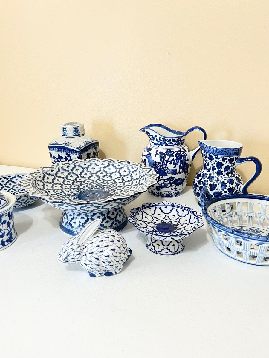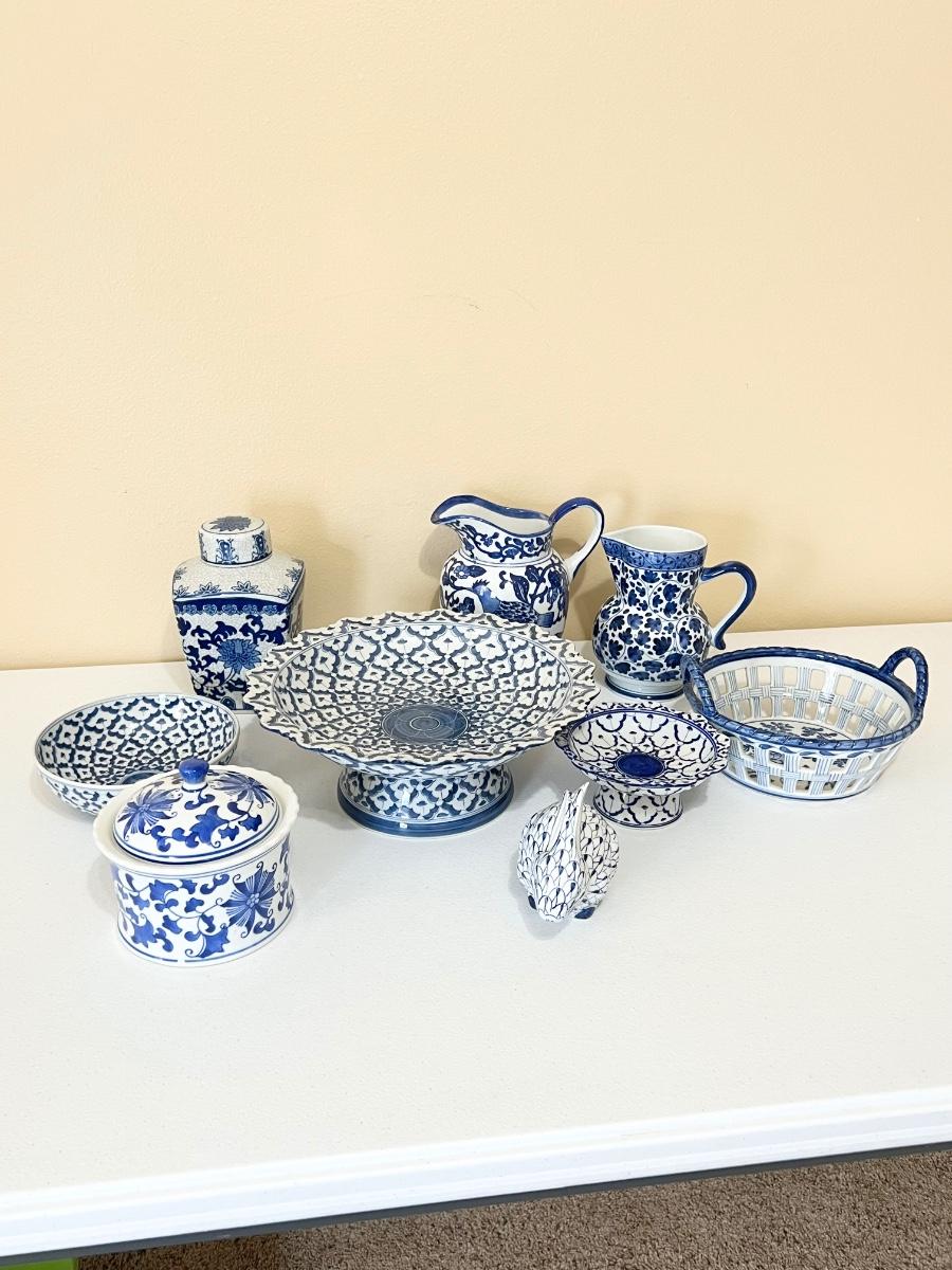 Nine (9) Assorted Blue & White Porcelain Home Decor
