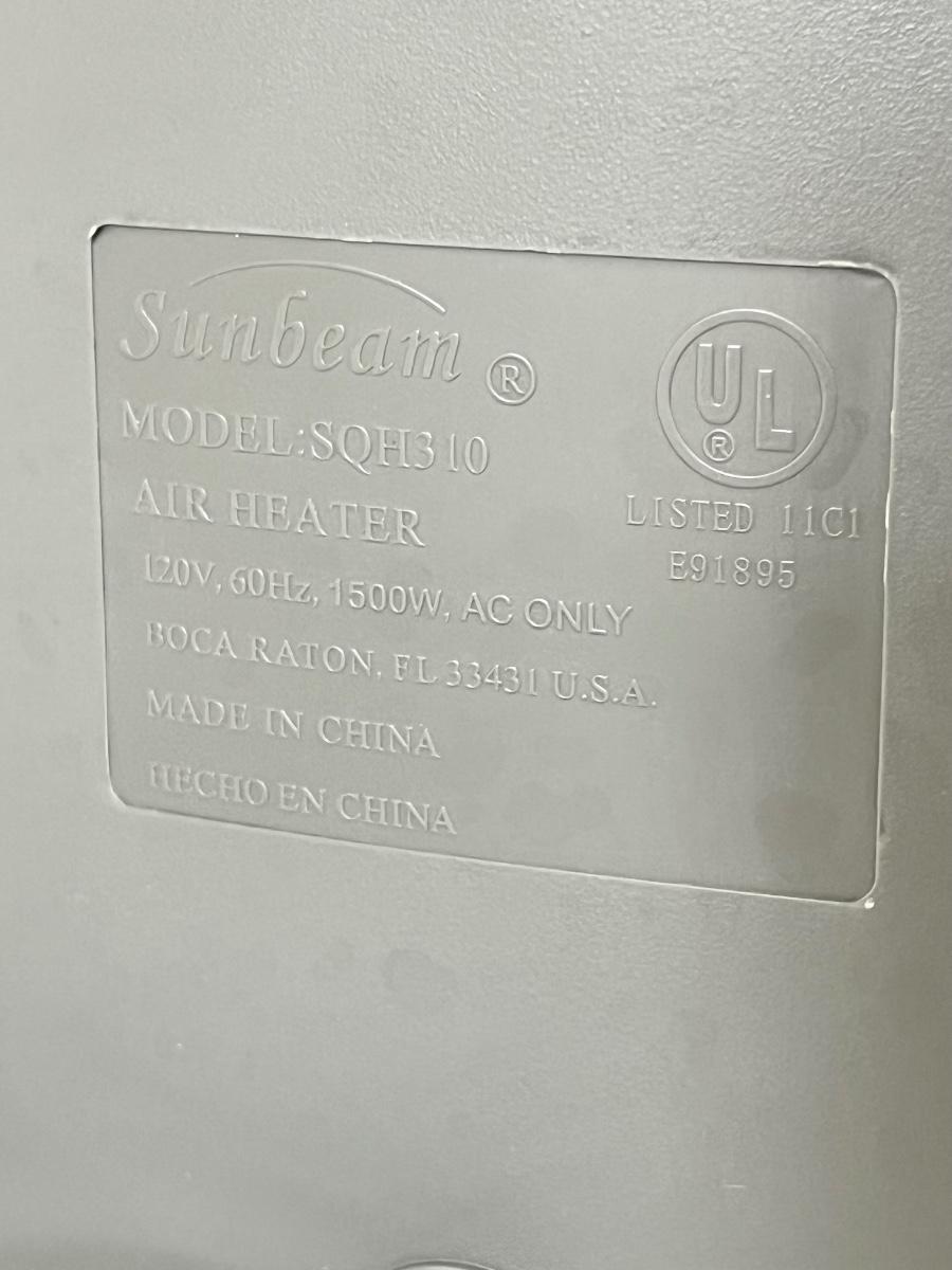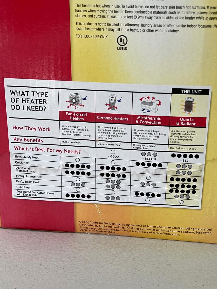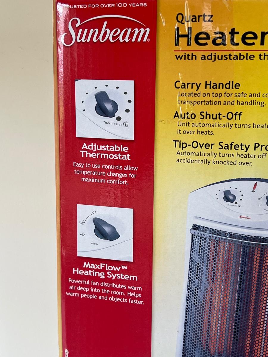 SUNBEAM ~ Quartz Heater With Adjustable Thermostat