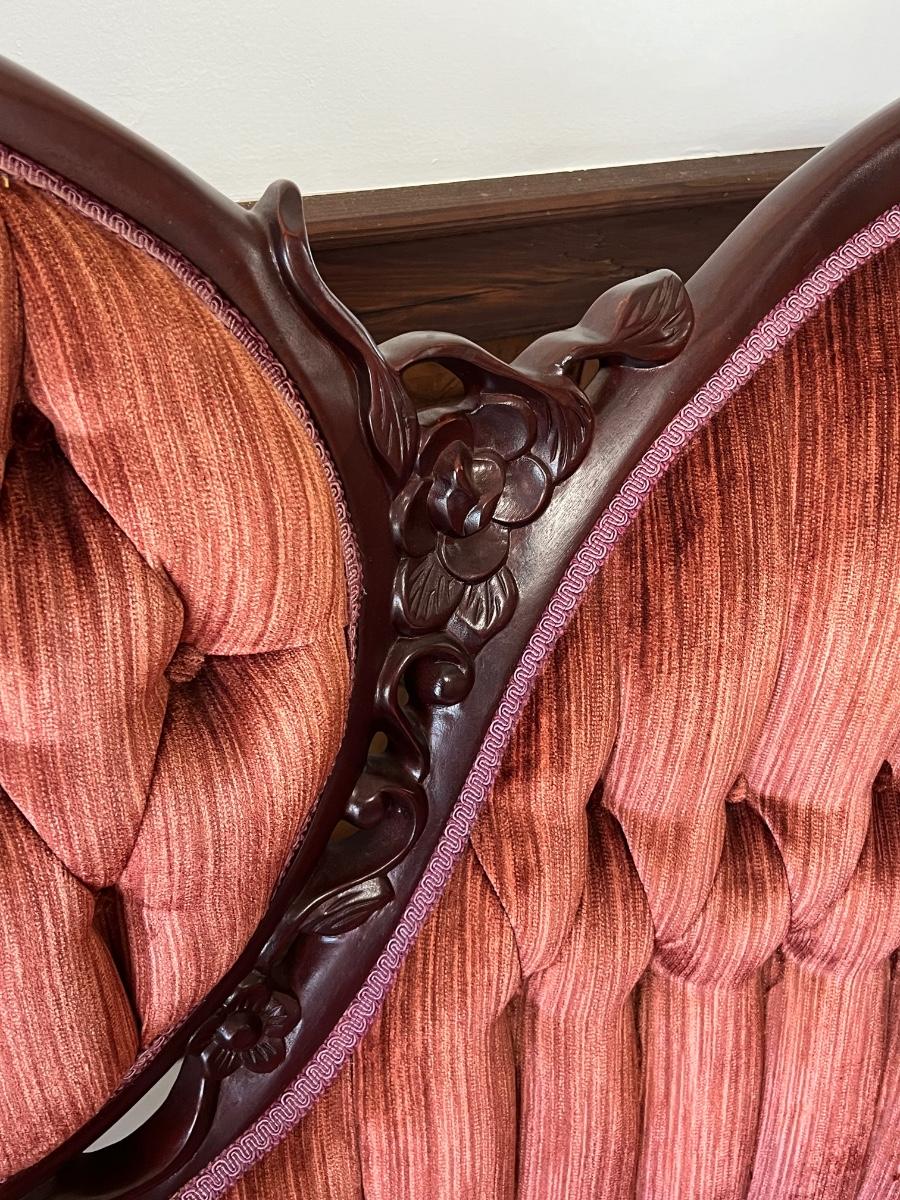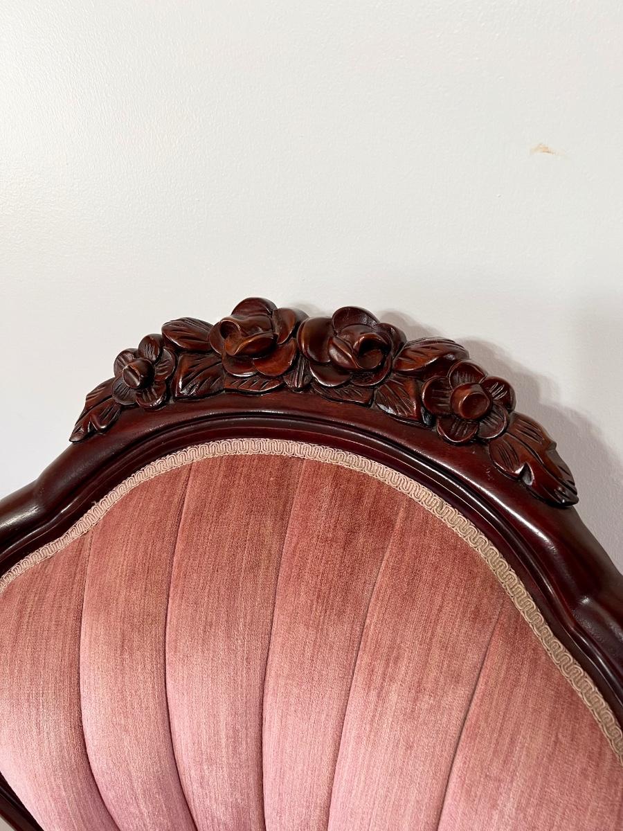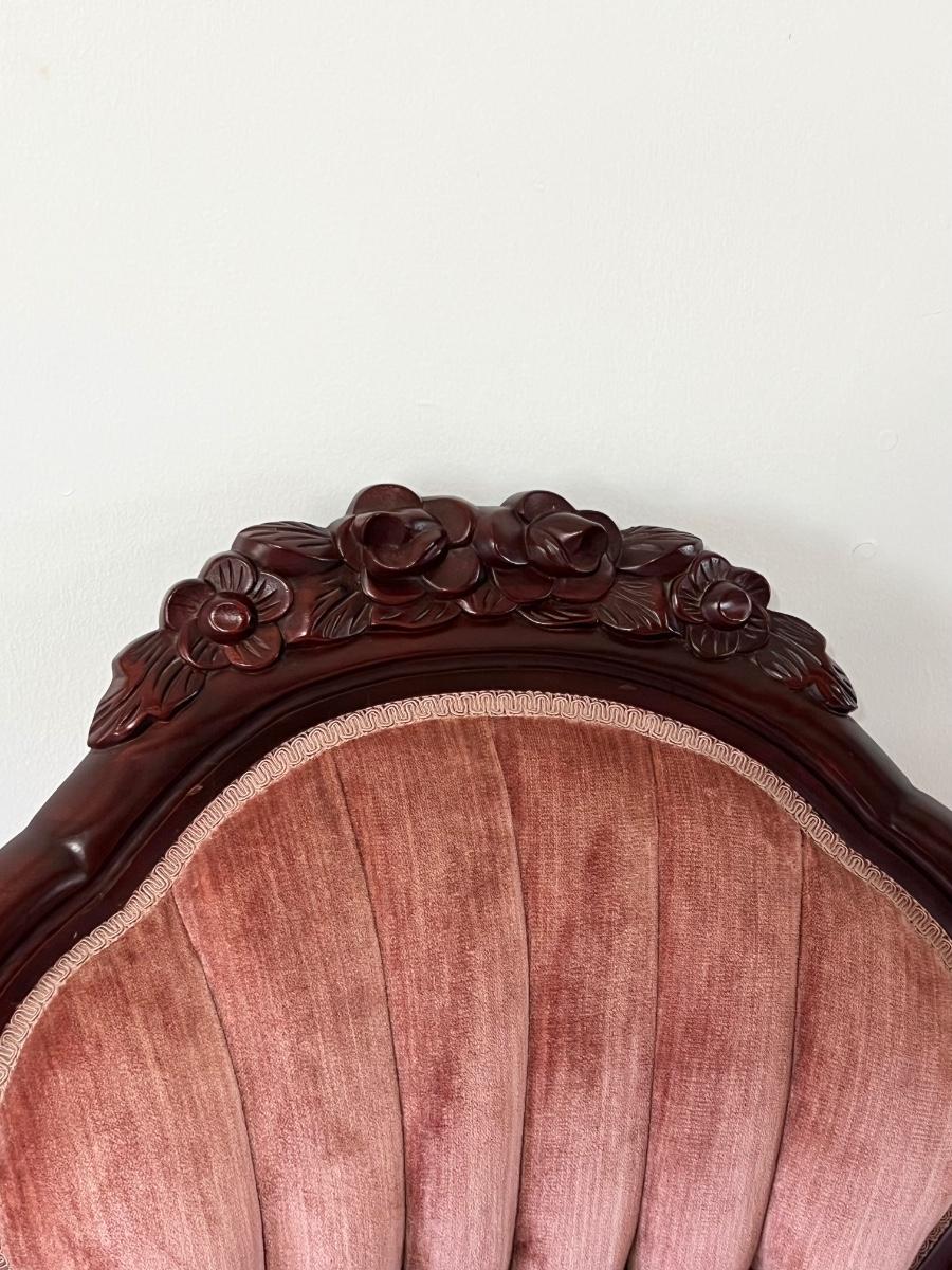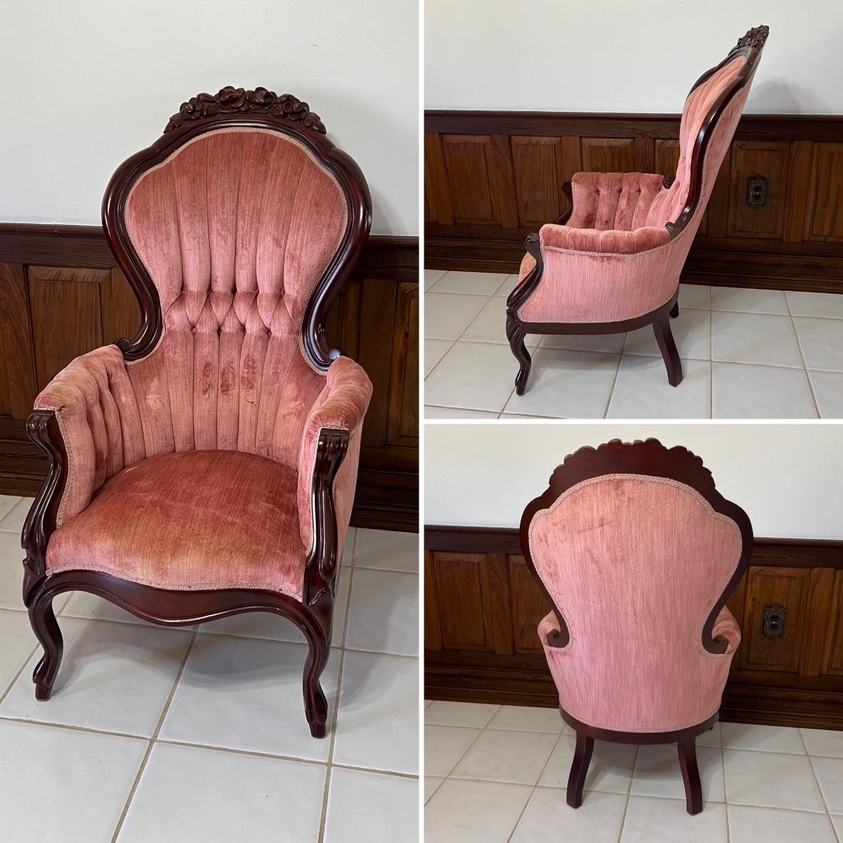 AMERICAN FURNITURE GALLERIES ~ Three (3) Piece Mahogany Floral Upholstered Victorian Style Tufted Set