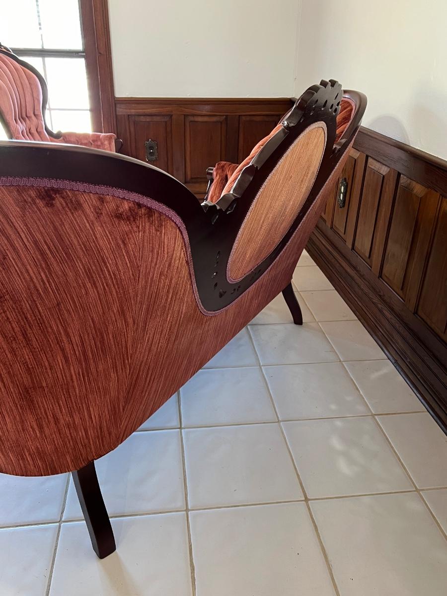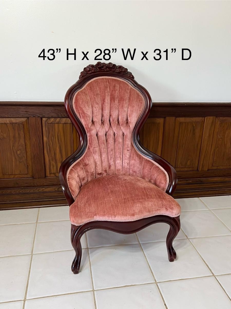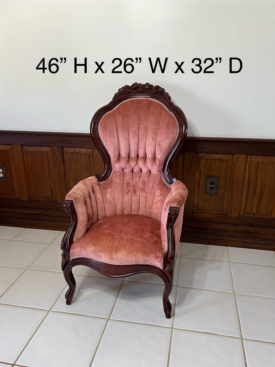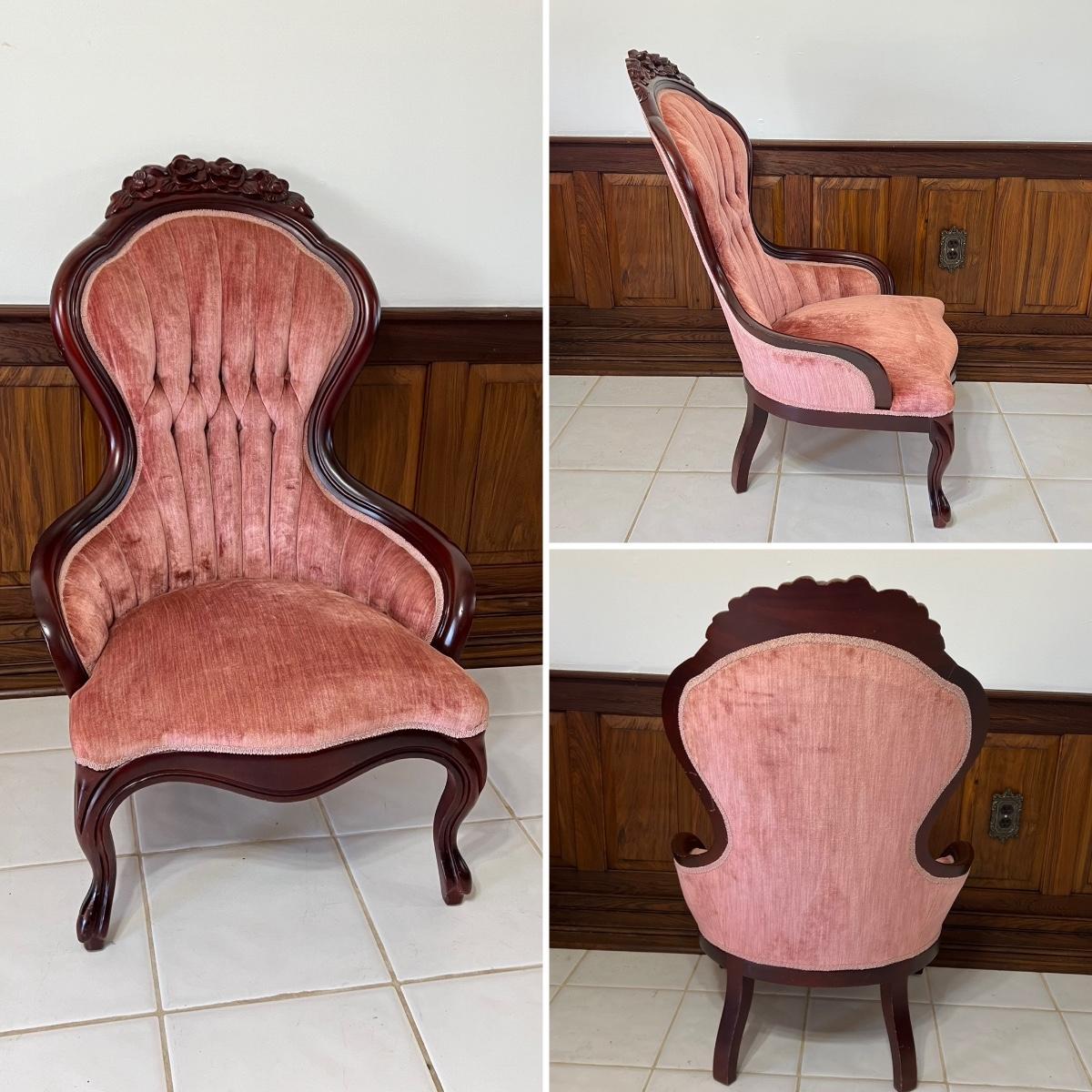 AMERICAN FURNITURE GALLERIES ~ Three (3) Piece Mahogany Floral Upholstered Victorian Style Tufted Set