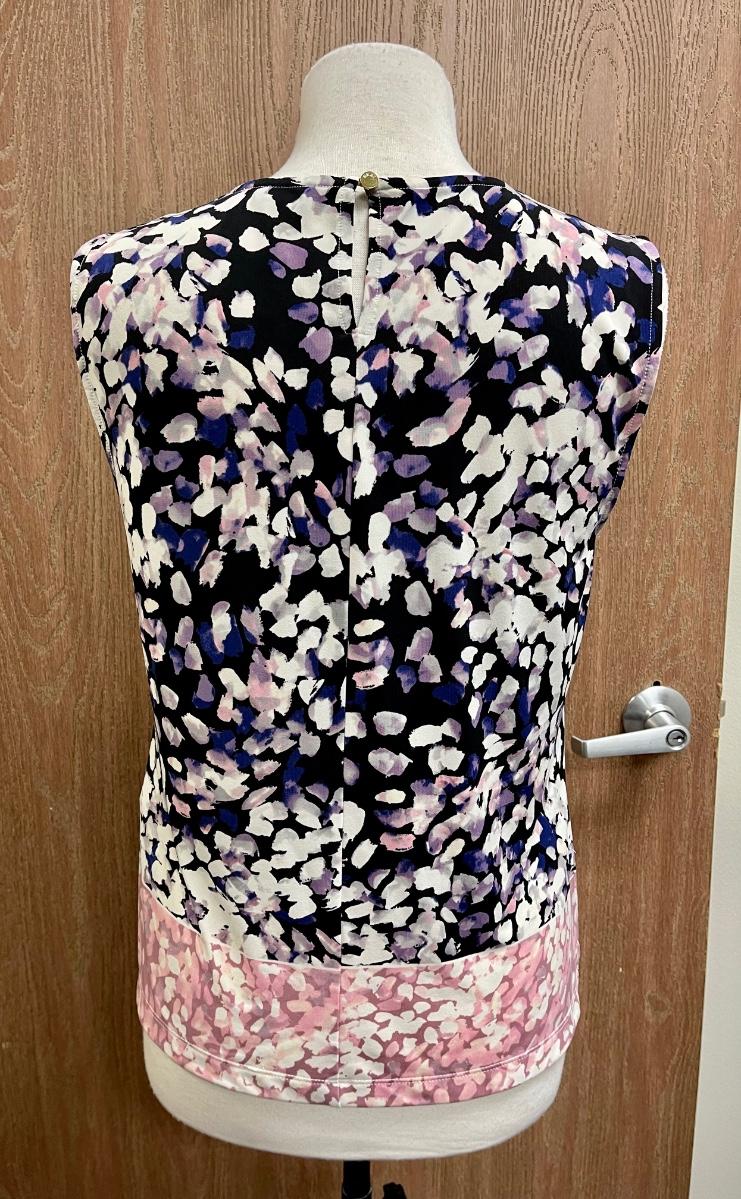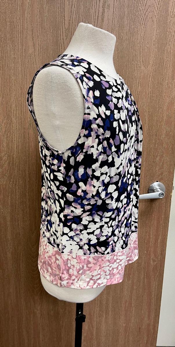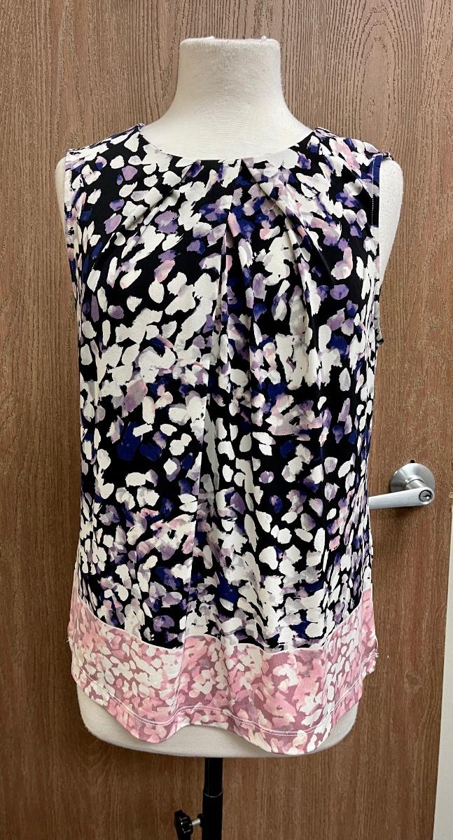 In good used condition. Material is 95% polyester and 5% spandex. Measures 19 inches across chest , 22 inches overall length.