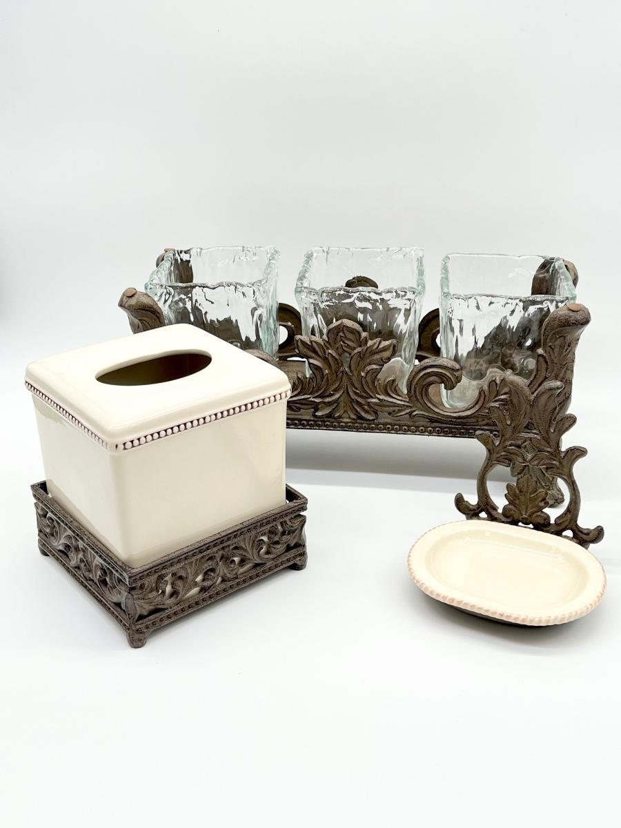 GG COLLECTION ~ Trio (3) ~ Ceramic / Metal Bathroom Accessories