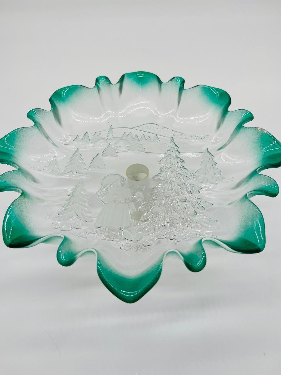 MIKASA ~ Green Frosted ~ Winter Christmas Ruffle Candy Dish
