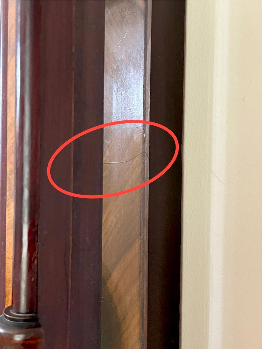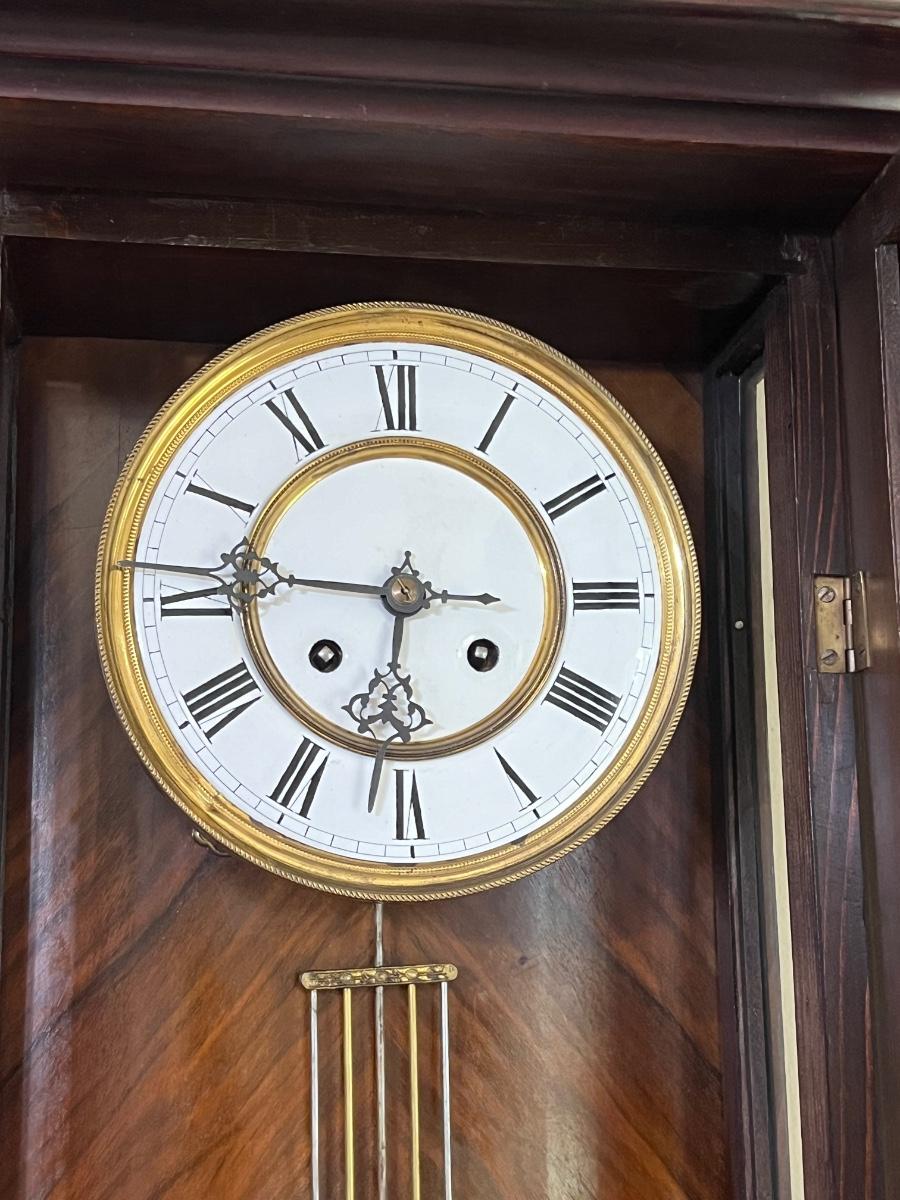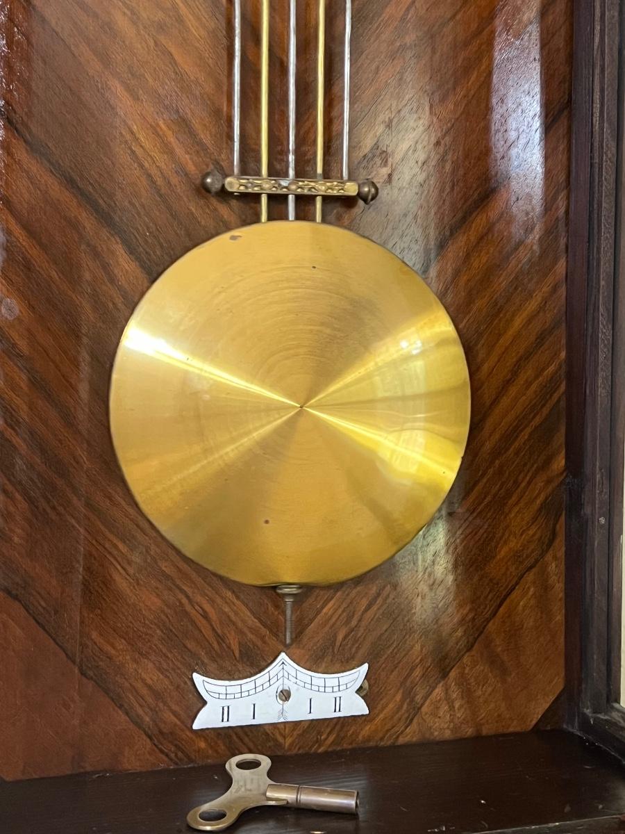 Chimes every hour & half hour ~ No brand ~ Has crack on side glass & has wear from age, see photos for condition ~ 36” H x 16.25” W x 7.25” D