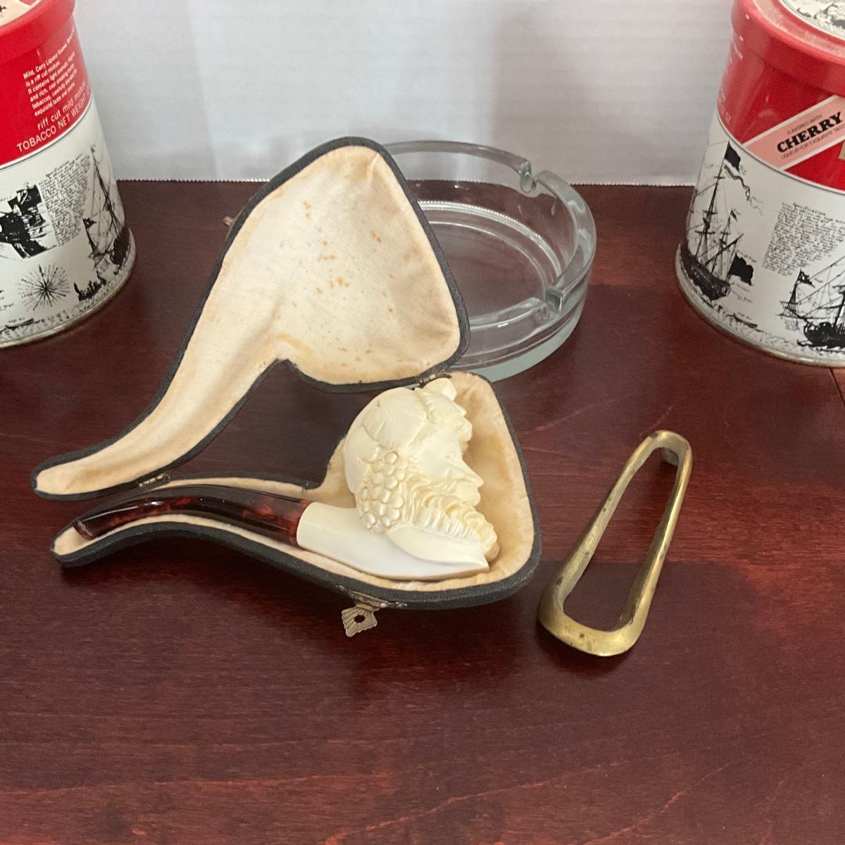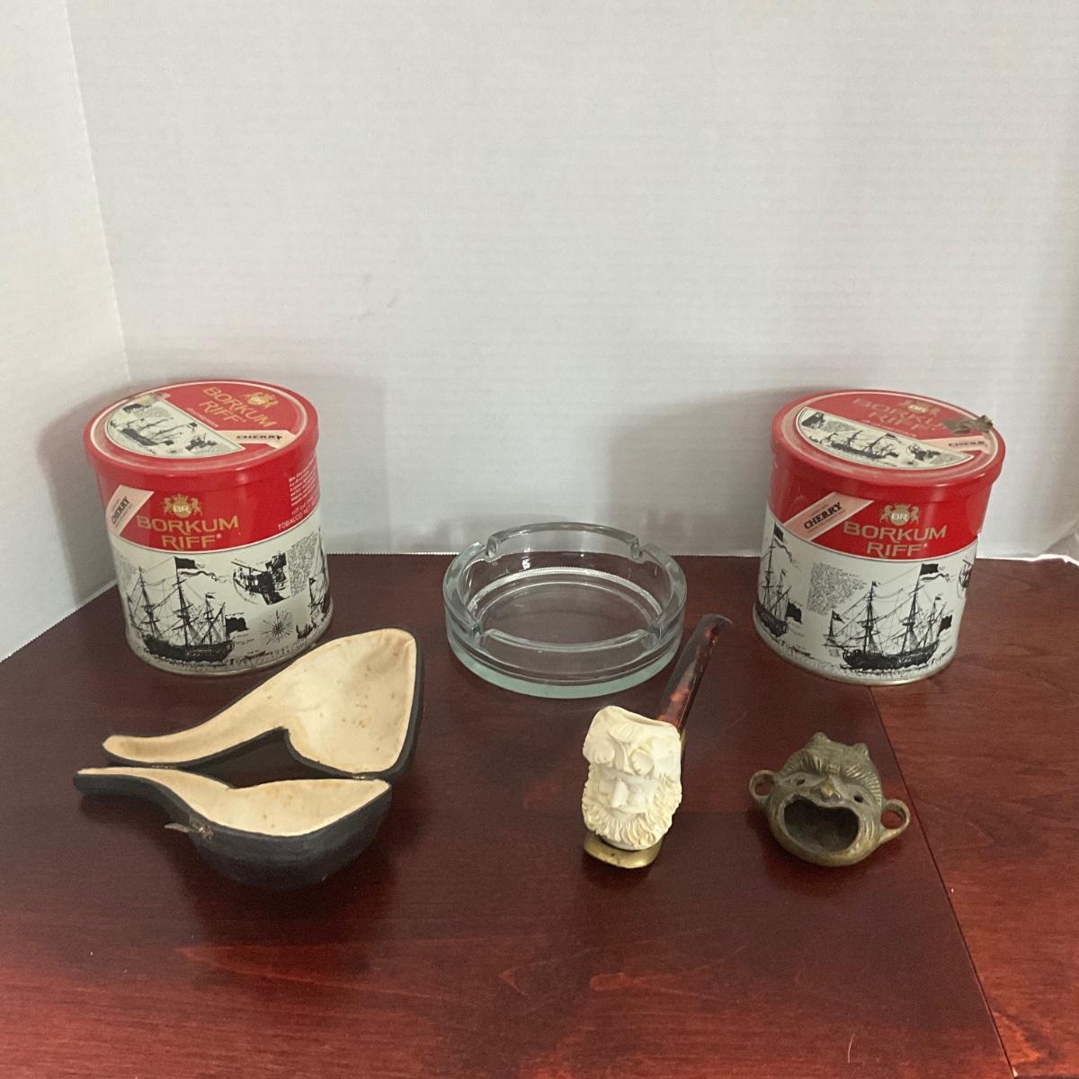 DO1317 Lot of Tobacco Tins, Meershaum Pipe, and Accessories
