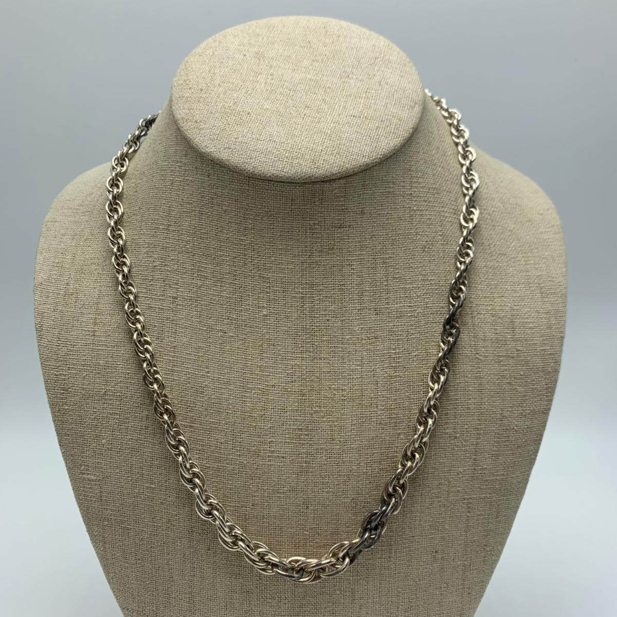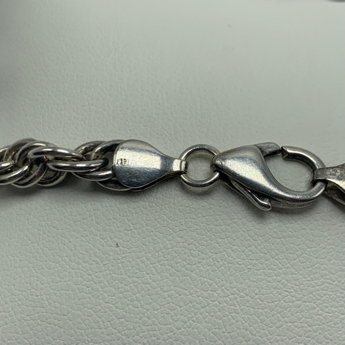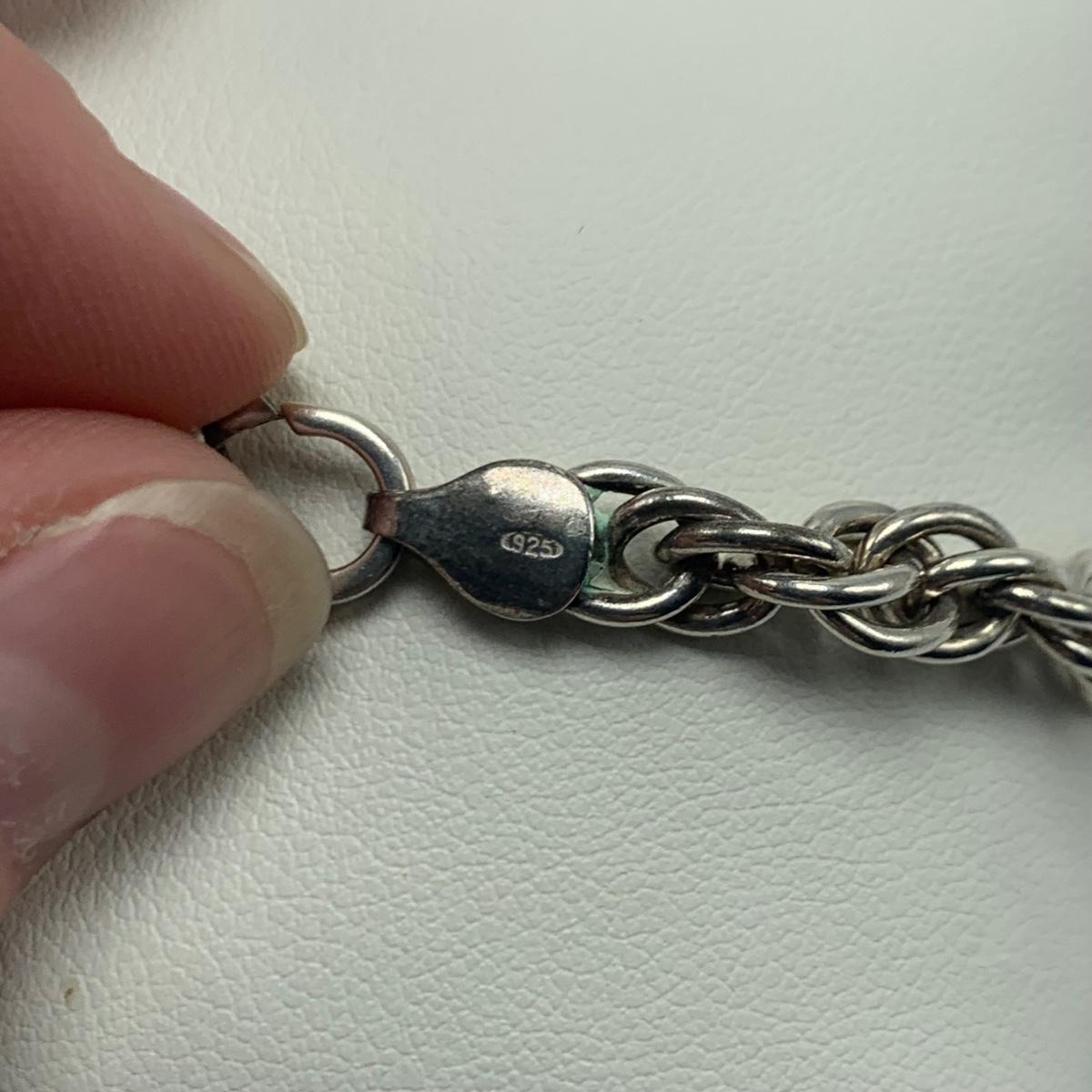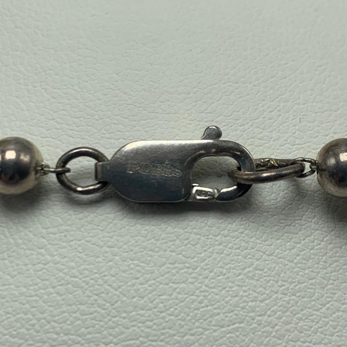 In this lot there are six necklaces, two with pendants, as well as four pairs of hoop earrings for pierced ears, one pair of dangly stud earrings, and a silver metal bead. The longest necklace is comprised of four chains; it can be worn from 32” to 35”. The shortest is the black corded necklace with the rectangular pendant; it can be worn from 16” to 20”. The necklace with the gold and silver colored beads is a chain with the clasp stamped “˜Dobbs’ and “˜925’. The chain link style necklace is marked “˜Italy 925’. The necklace with the medallion pendant is marked “˜Chile 999’. All sales are final. No returns or refunds. Please bid accordingly.