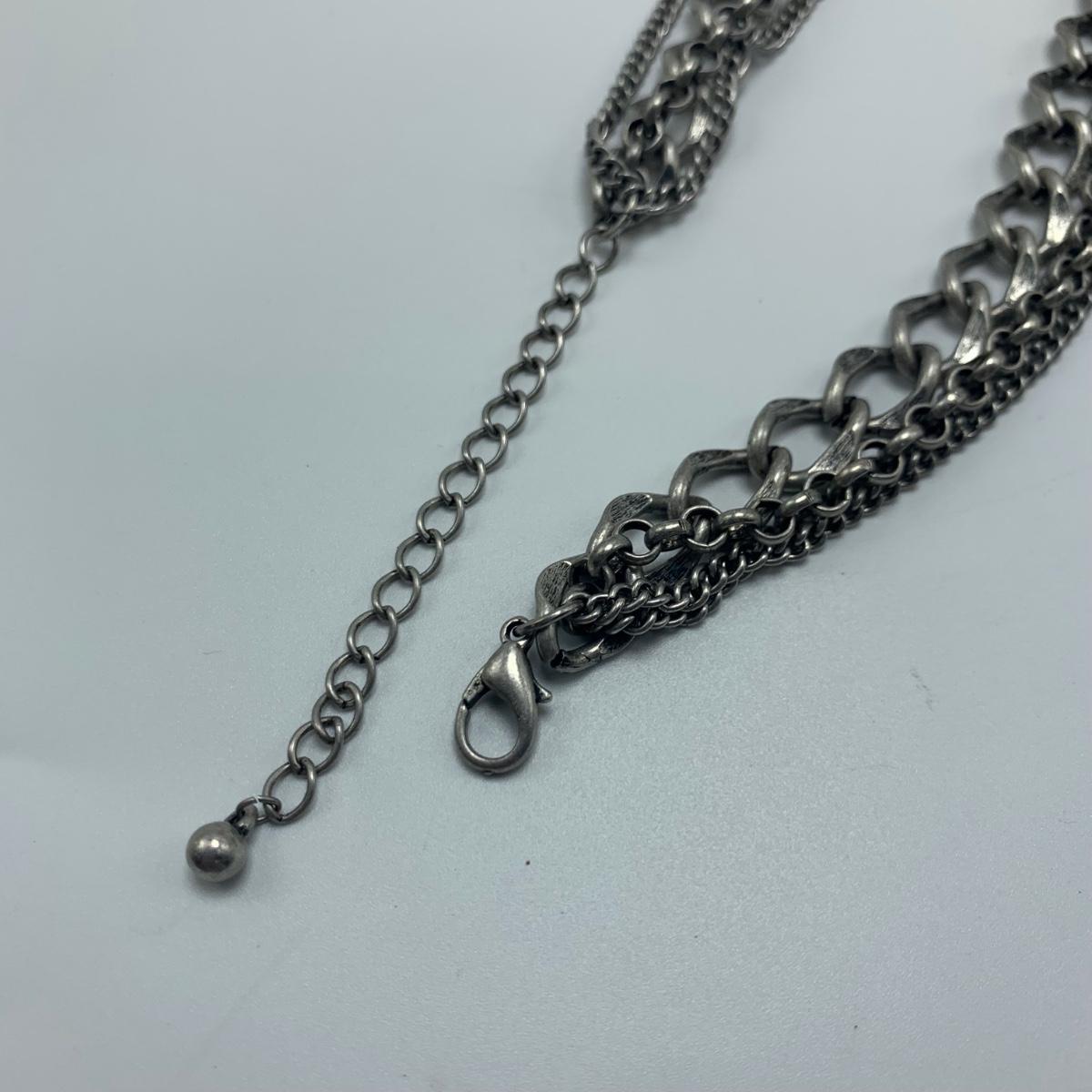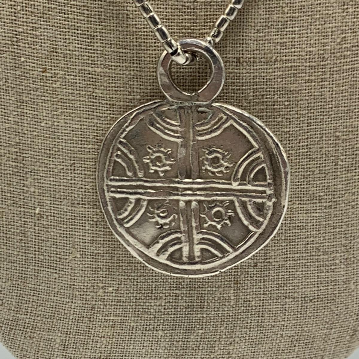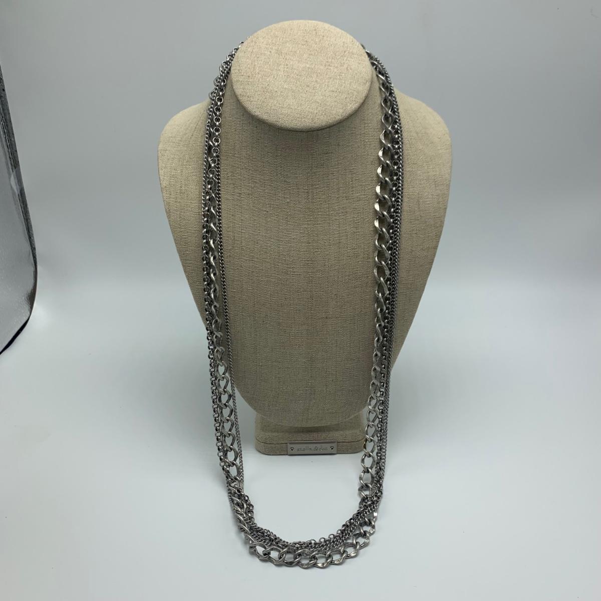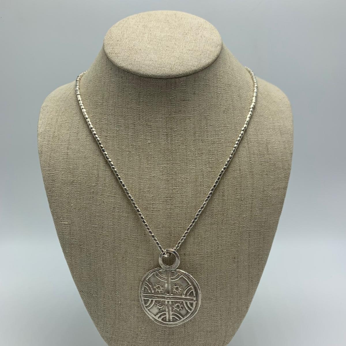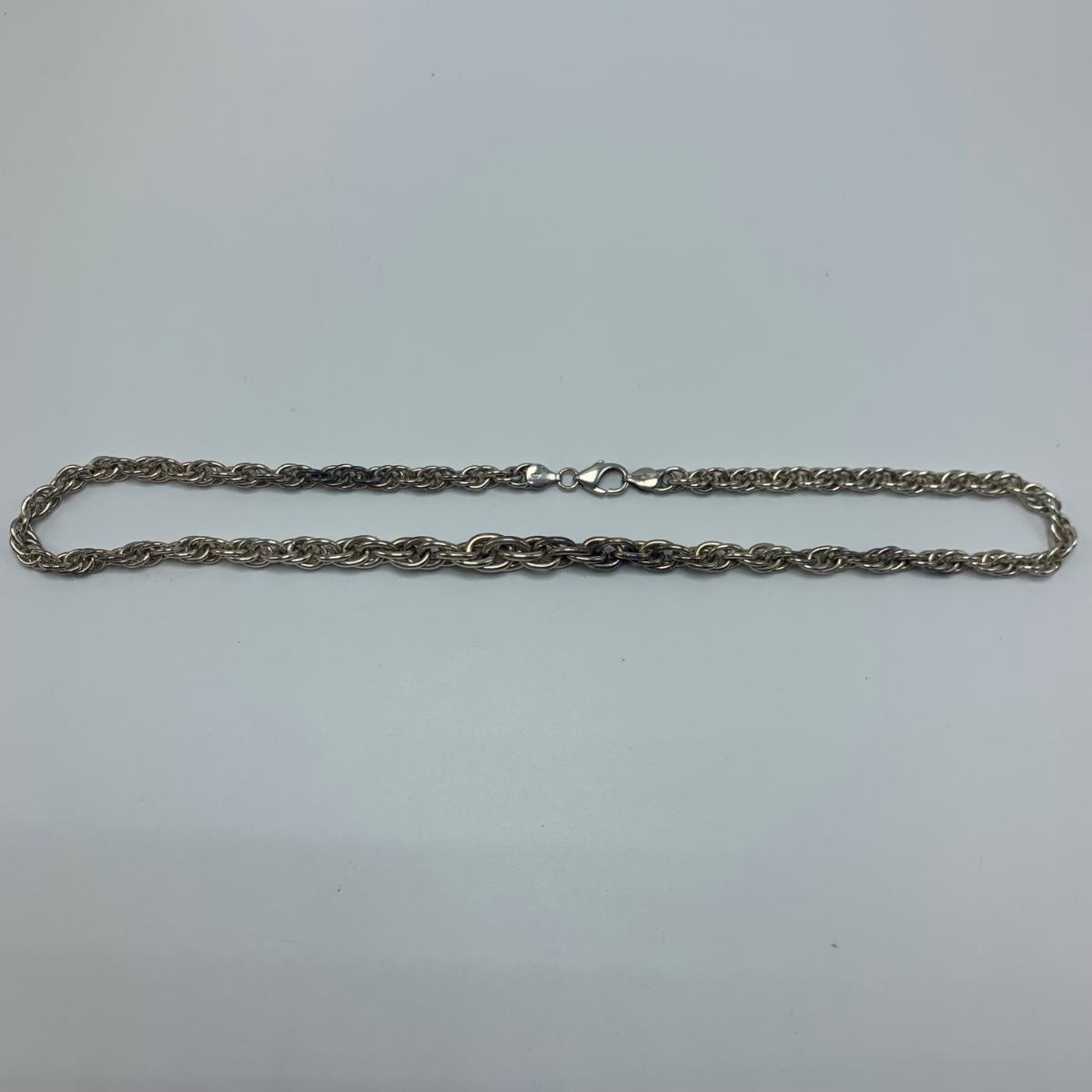 In this lot there are six necklaces, two with pendants, as well as four pairs of hoop earrings for pierced ears, one pair of dangly stud earrings, and a silver metal bead. The longest necklace is comprised of four chains; it can be worn from 32” to 35”. The shortest is the black corded necklace with the rectangular pendant; it can be worn from 16” to 20”. The necklace with the gold and silver colored beads is a chain with the clasp stamped “˜Dobbs’ and “˜925’. The chain link style necklace is marked “˜Italy 925’. The necklace with the medallion pendant is marked “˜Chile 999’. All sales are final. No returns or refunds. Please bid accordingly.