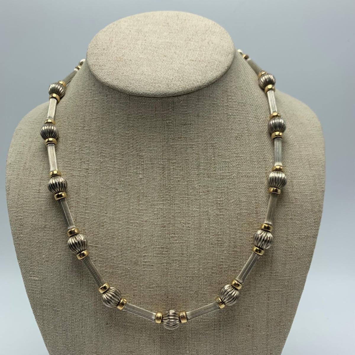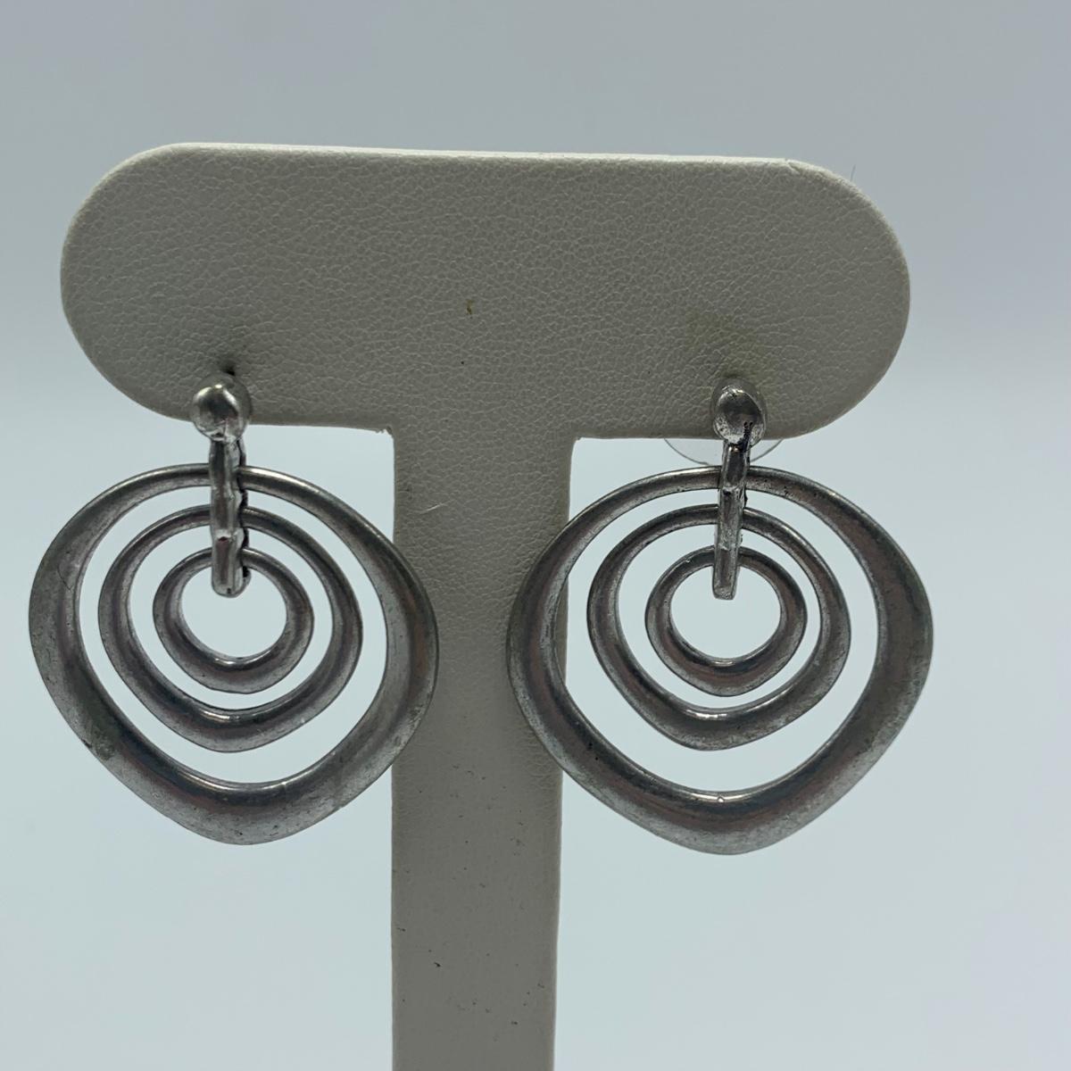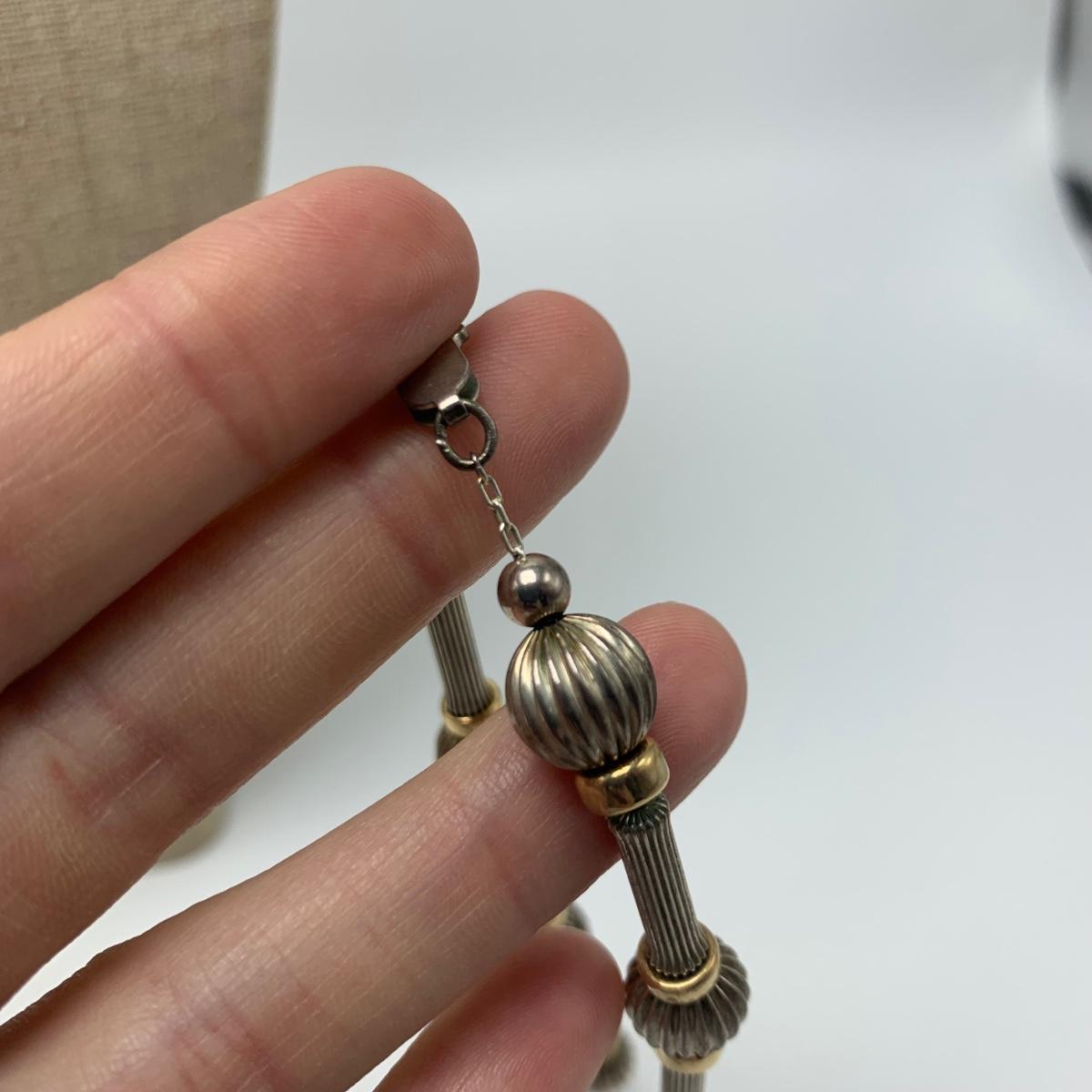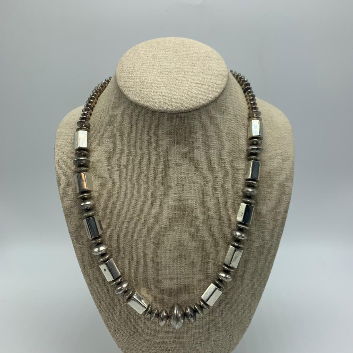 In this lot there are six necklaces, two with pendants, as well as four pairs of hoop earrings for pierced ears, one pair of dangly stud earrings, and a silver metal bead. The longest necklace is comprised of four chains; it can be worn from 32” to 35”. The shortest is the black corded necklace with the rectangular pendant; it can be worn from 16” to 20”. The necklace with the gold and silver colored beads is a chain with the clasp stamped “˜Dobbs’ and “˜925’. The chain link style necklace is marked “˜Italy 925’. The necklace with the medallion pendant is marked “˜Chile 999’. All sales are final. No returns or refunds. Please bid accordingly.