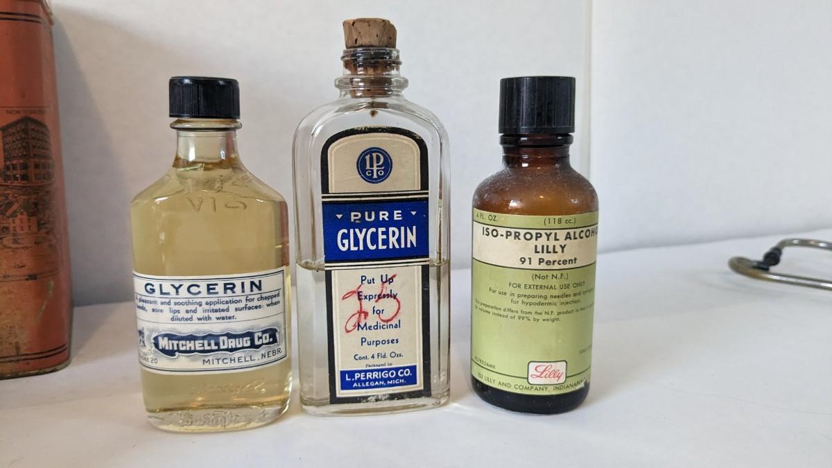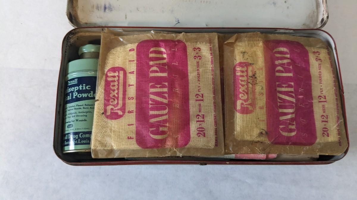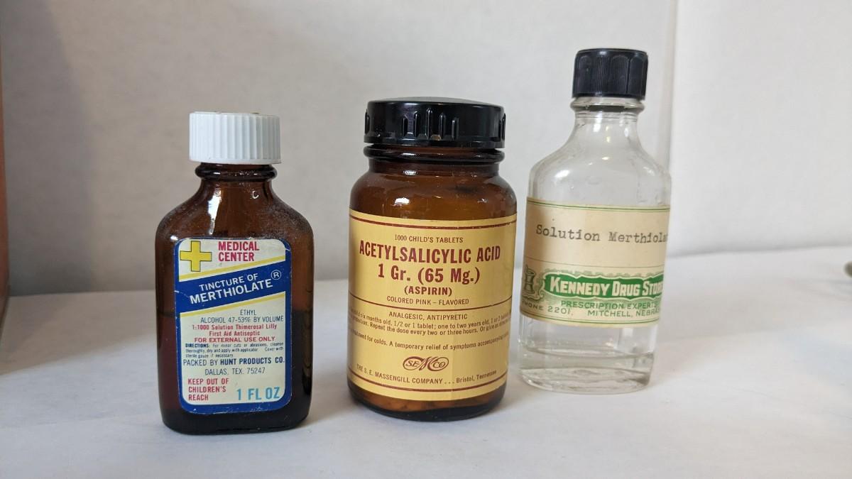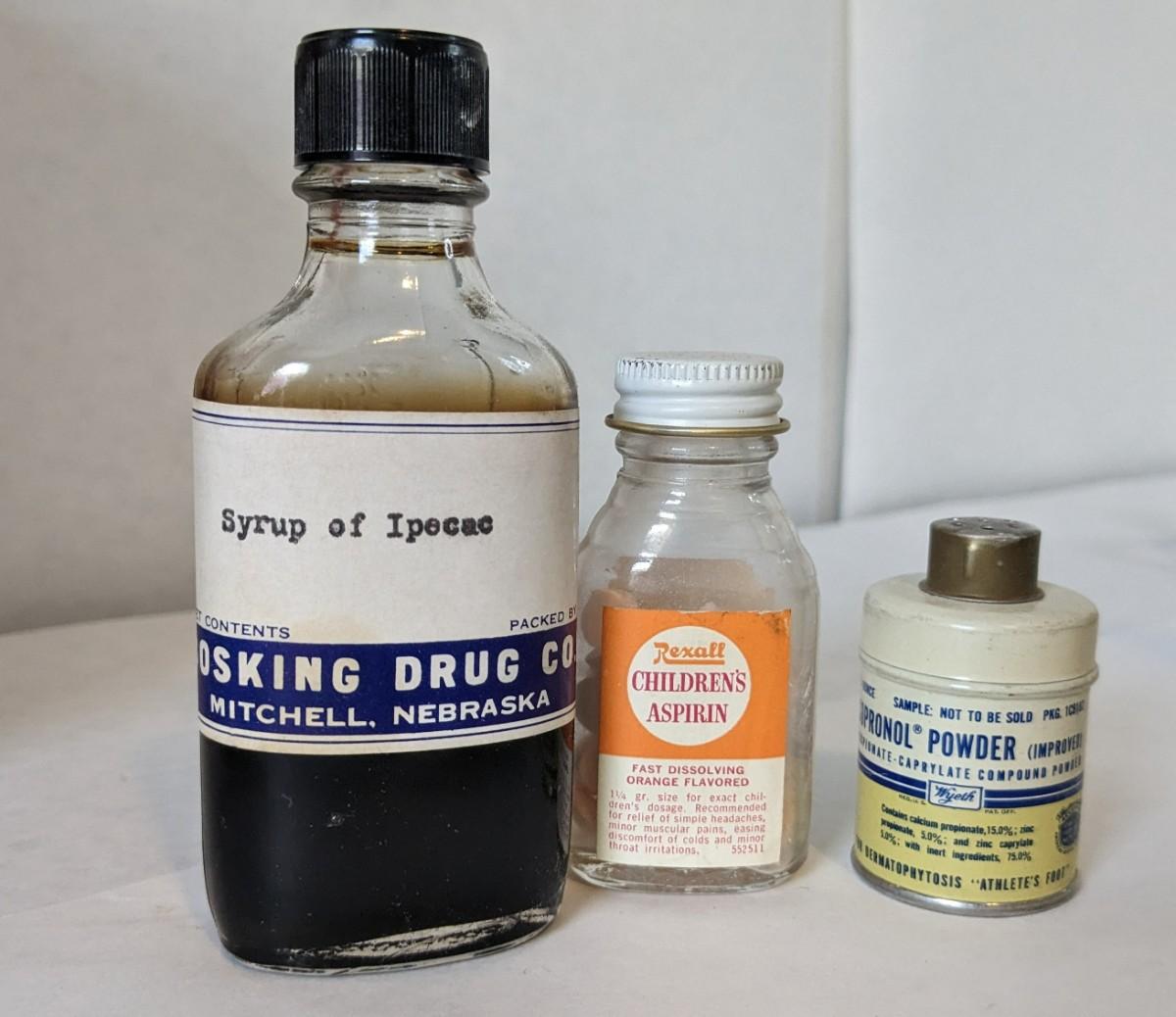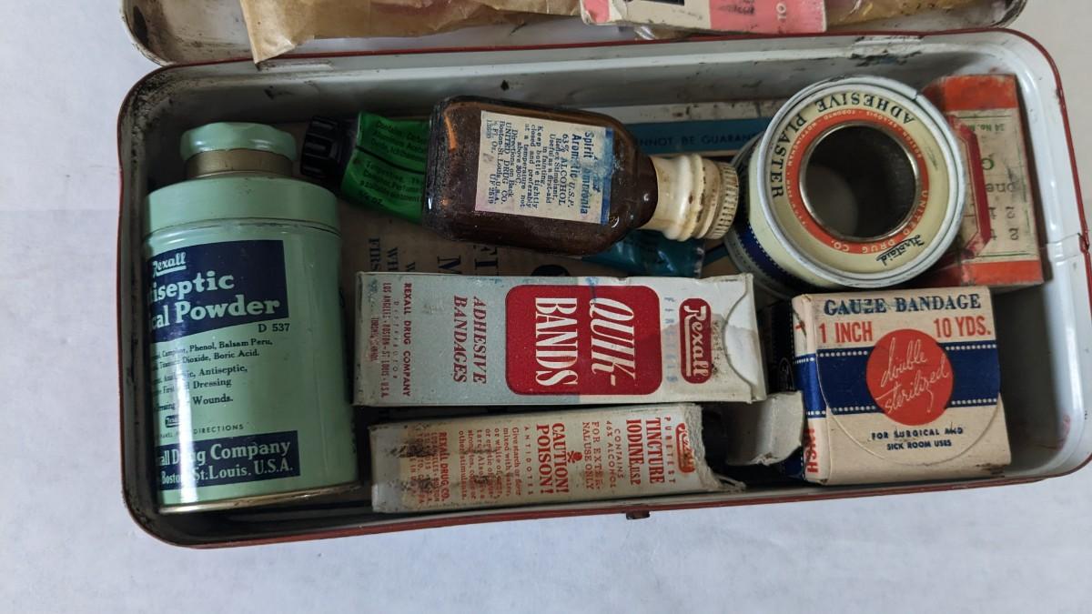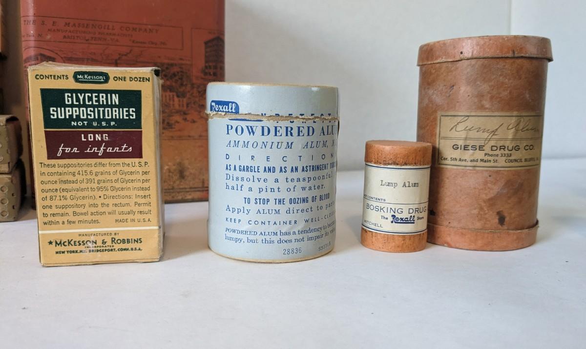 Straight from Doc Watson's own medicine cabinet is a lovely display of antique and vintage medicines, compounds, oils, powders, and other items needed for taking quick medical action. Items are in surprisingly good condition for age with a lot of bottles still containing contents and some just new in package. No shipping.