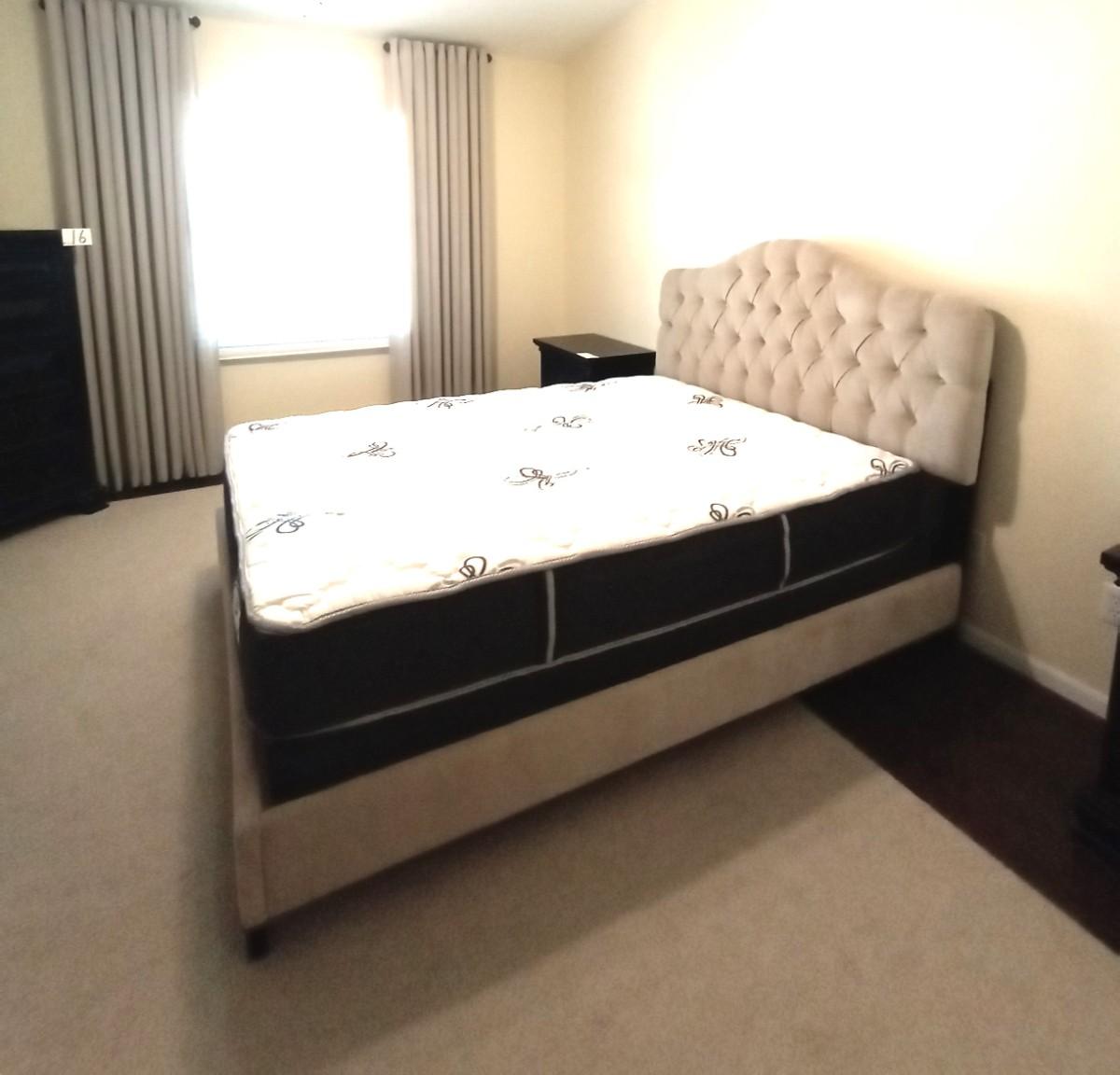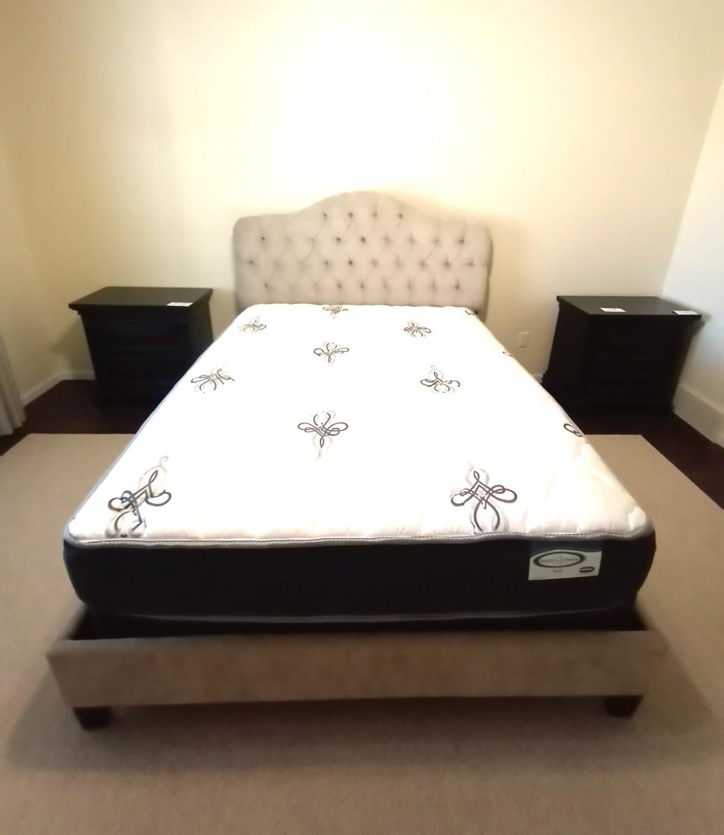 DOCTORS CHOICE QUEEN SIZE BED WITH TUFTED HEADBOARD APPROX. 63X54 MATTRESS APPROX. 63X84