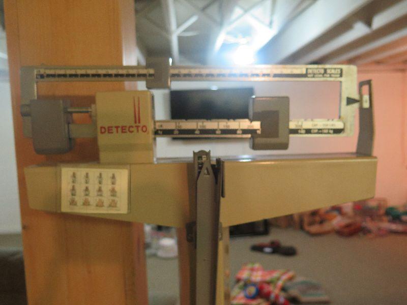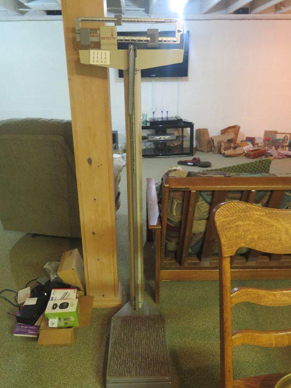 Detecto scale. Great for the kids, get weighed and measured at same time. Untested. Heavy, bring help to move from basement.