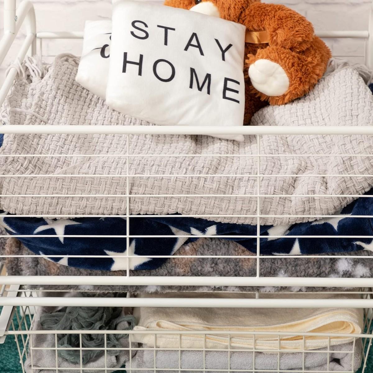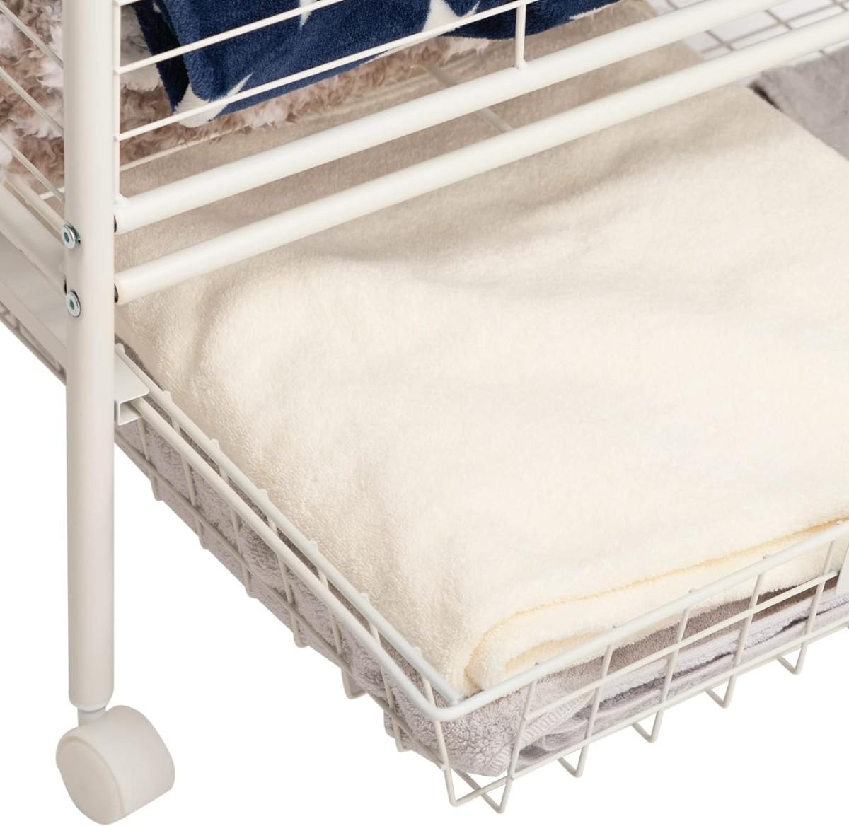 Doeworks Large Metal Wheeled Laundry Butler Cart w/ Storage Basket (New in Box)