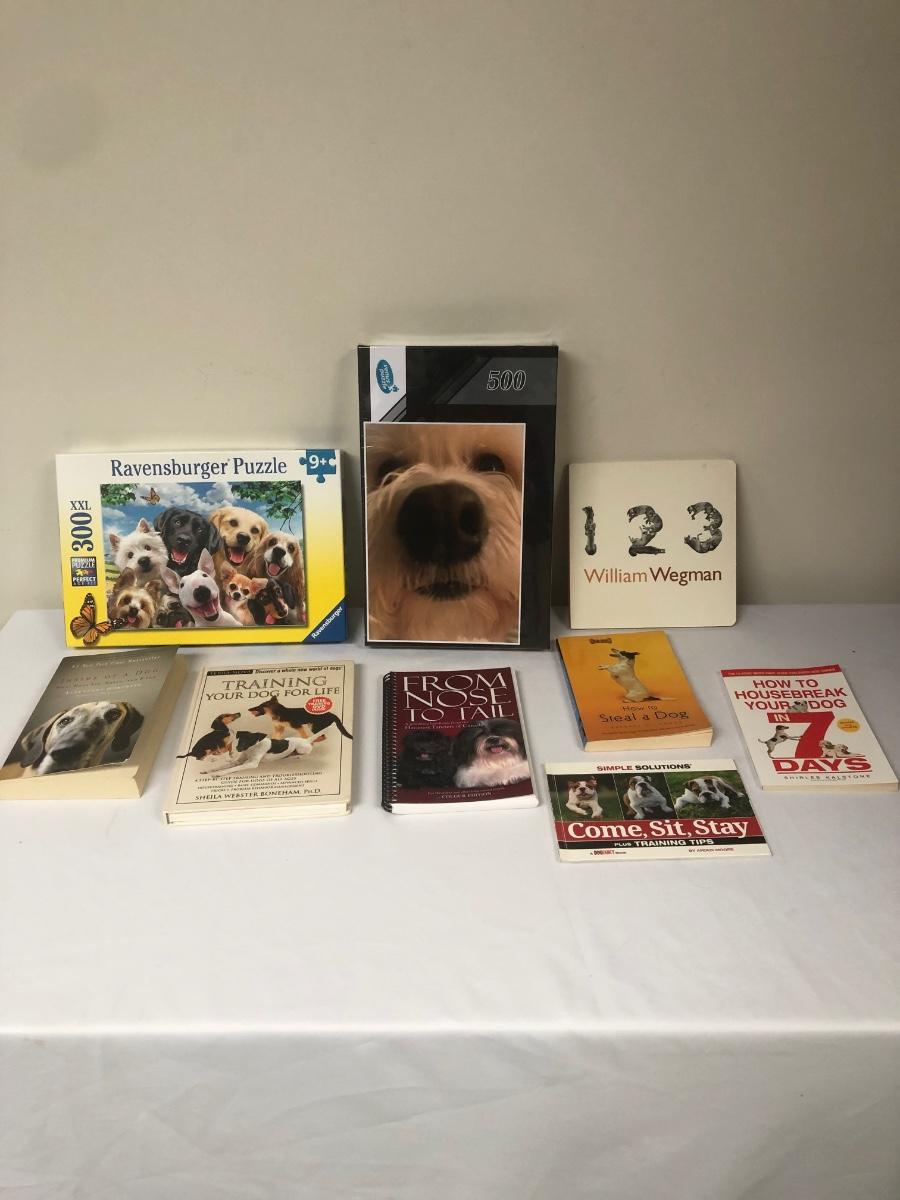This dog themed lot includes seven books (two hard cover) and two puzzles (one puzzle has never been opened). Shipping Available.