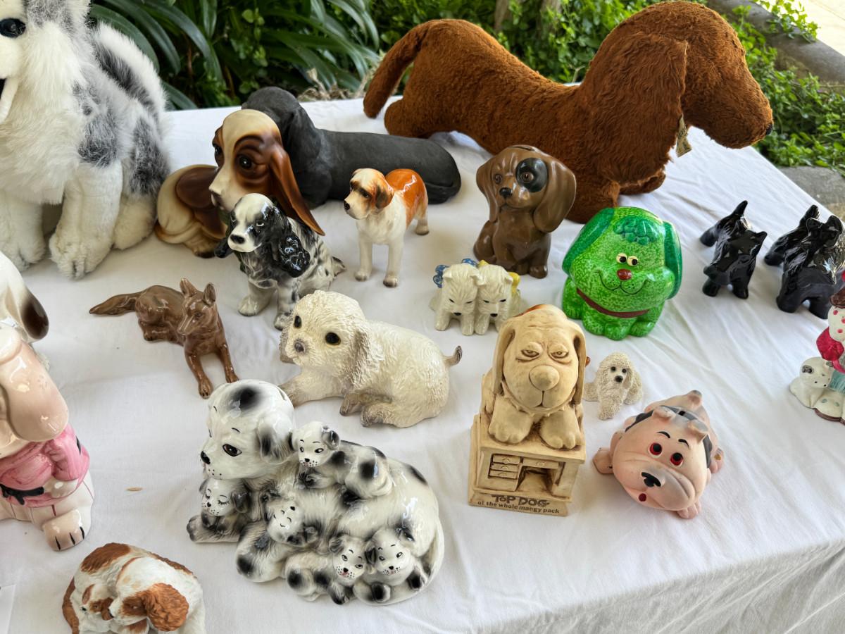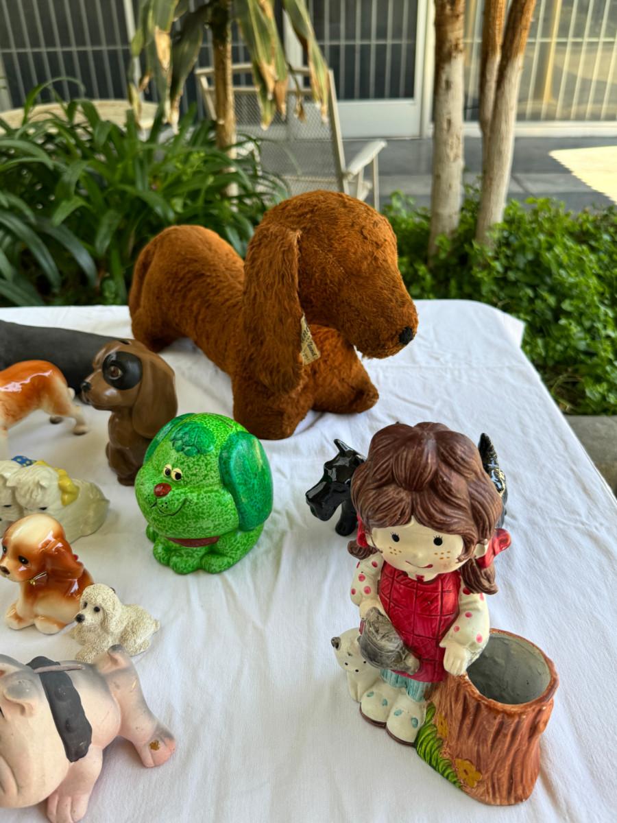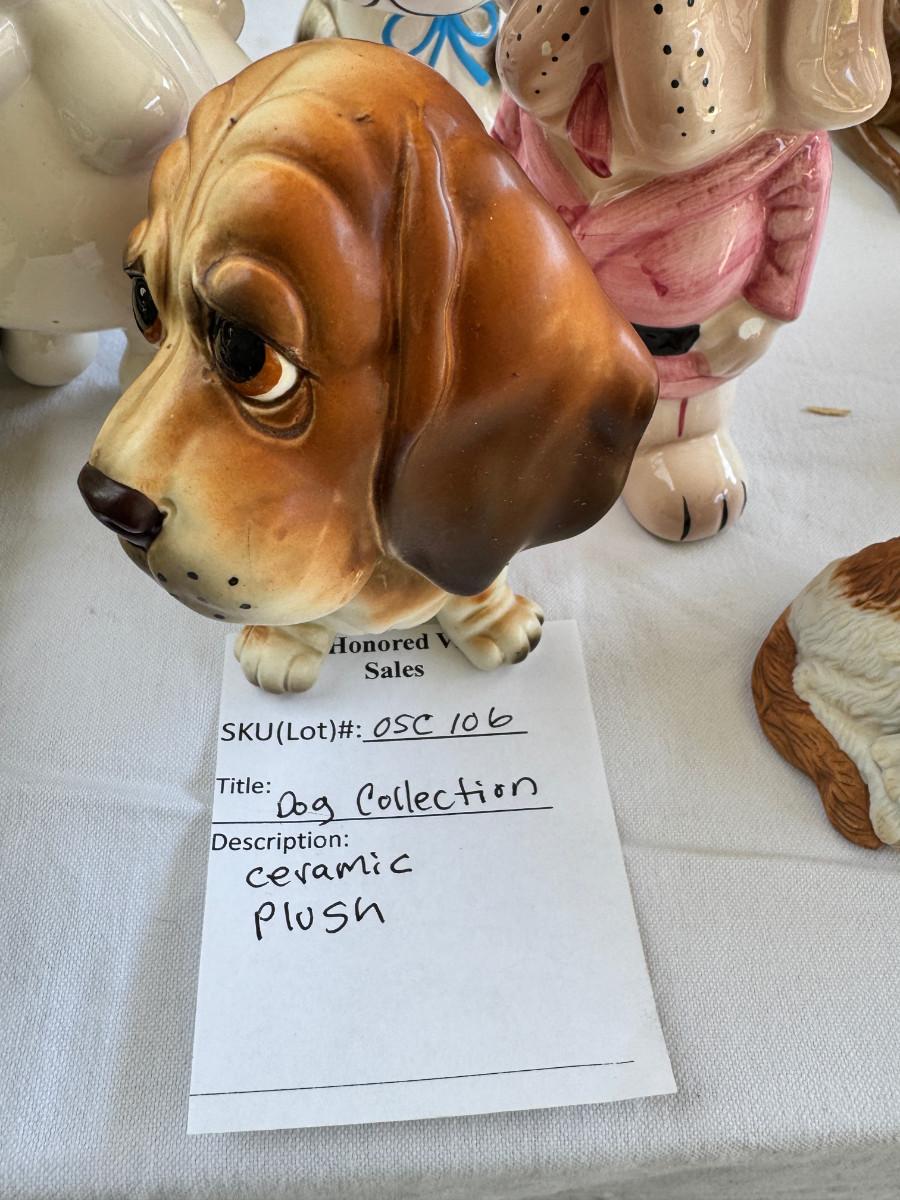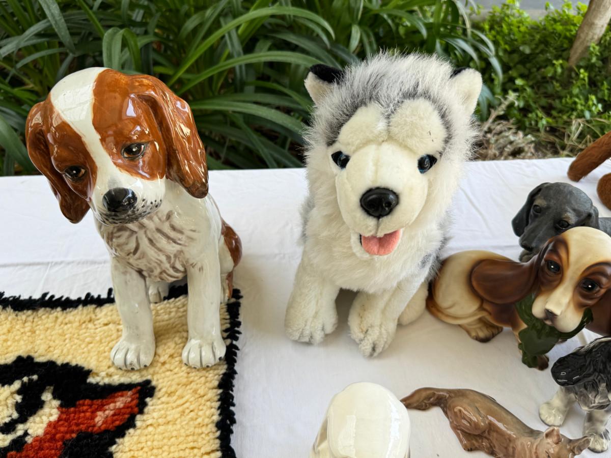 Gund puppy very loved, Mid century ceramic dogs, money banks, Huskie dog plush. Sorry no shipping