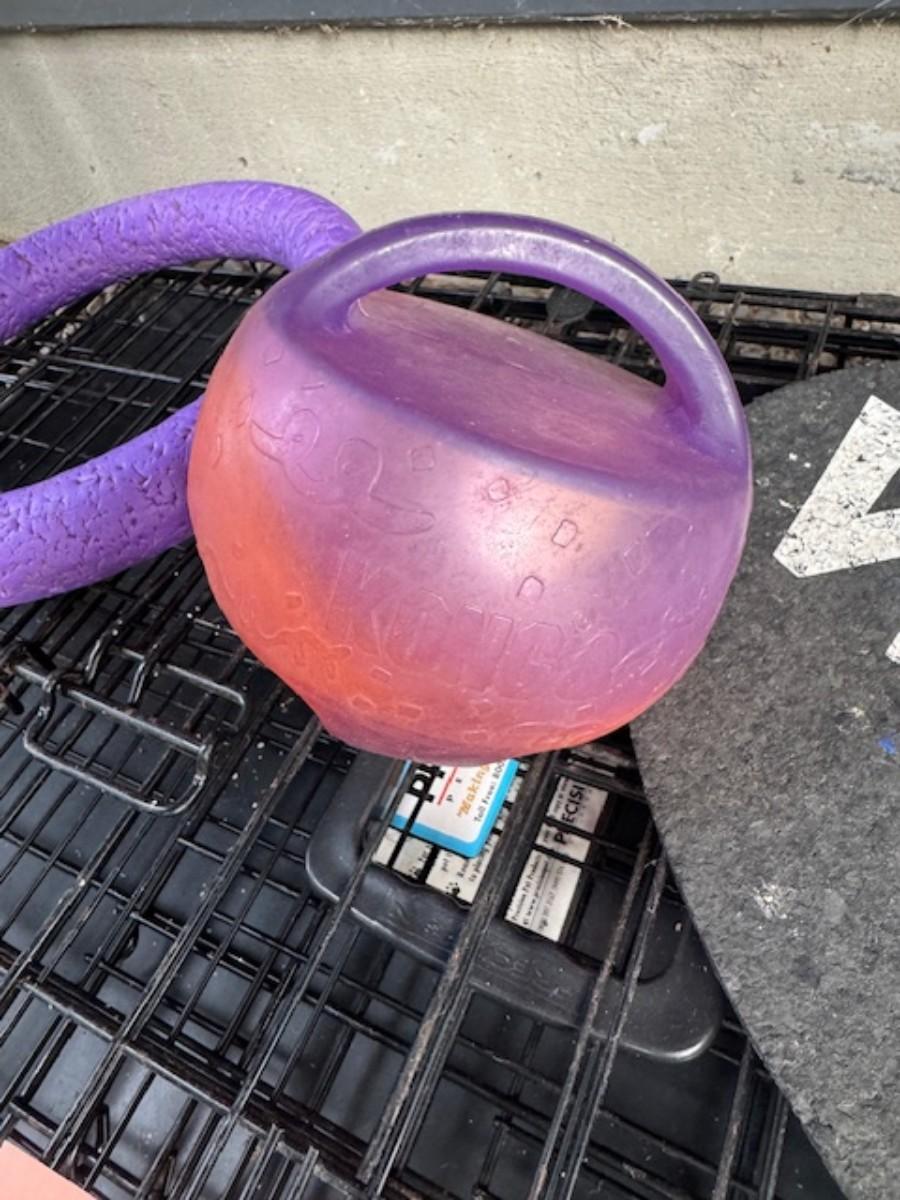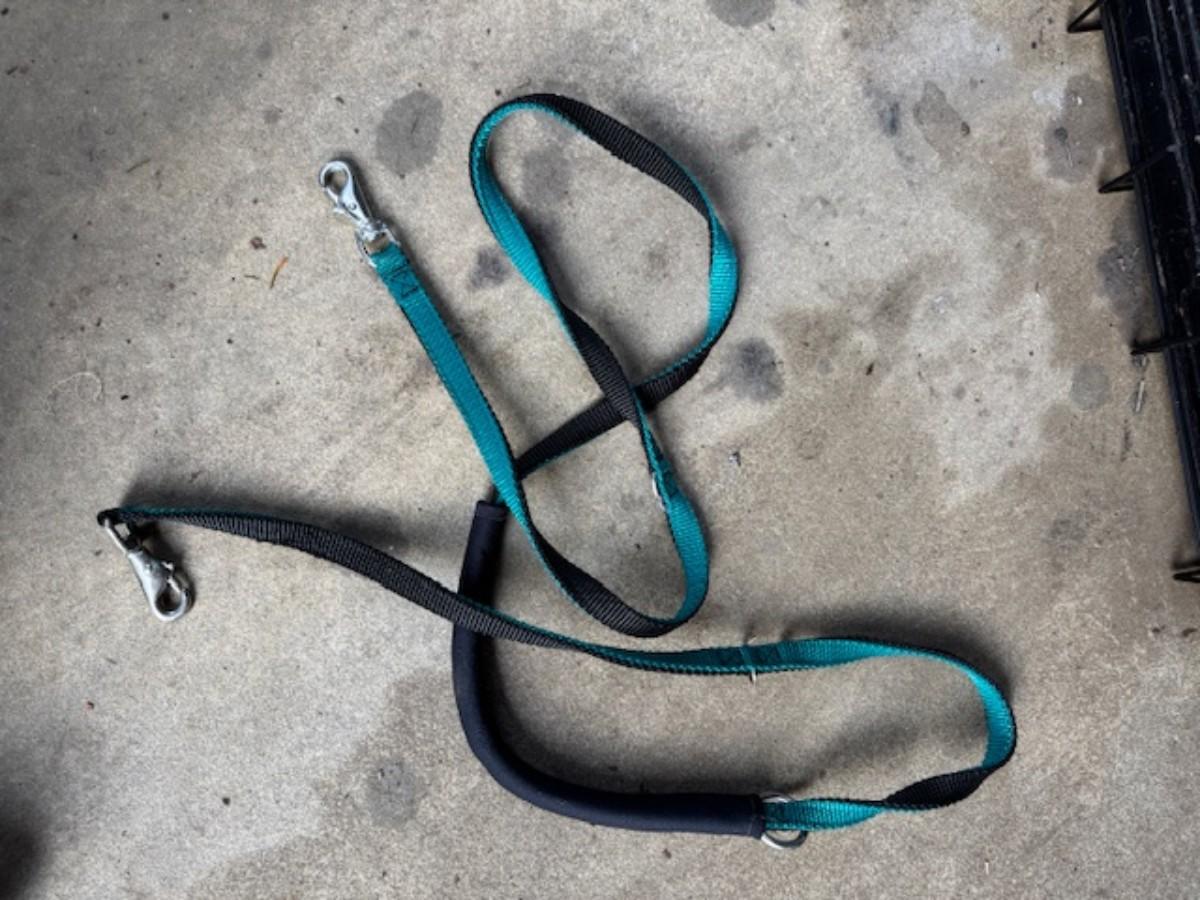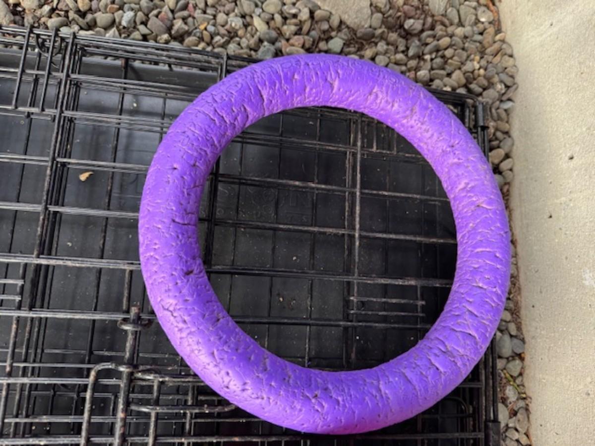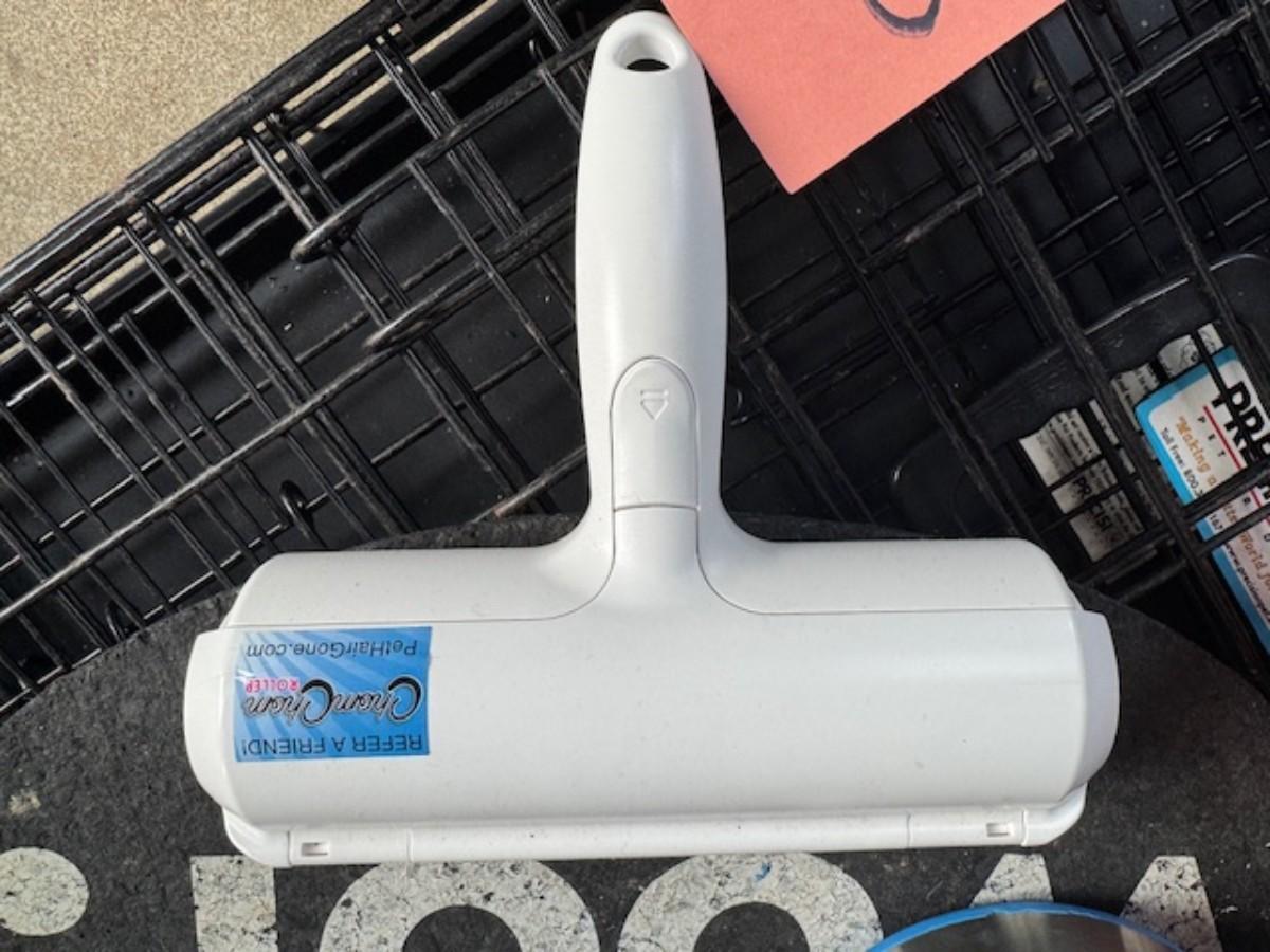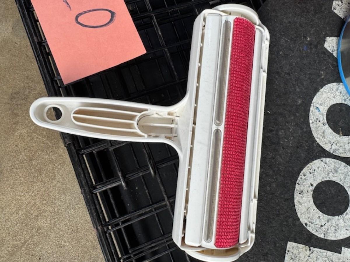 Precision Pet Products folding kennel - W 30" x D 19" x H 21" has a handle on top and removeable lower tray for cleaning. (Has a little bit of rust present.) 2 non matching bowls, "WOOF" food bowl mat, 1 leash with 2 hooks and holding grip, and a pet hair remover from pethairgone.com.